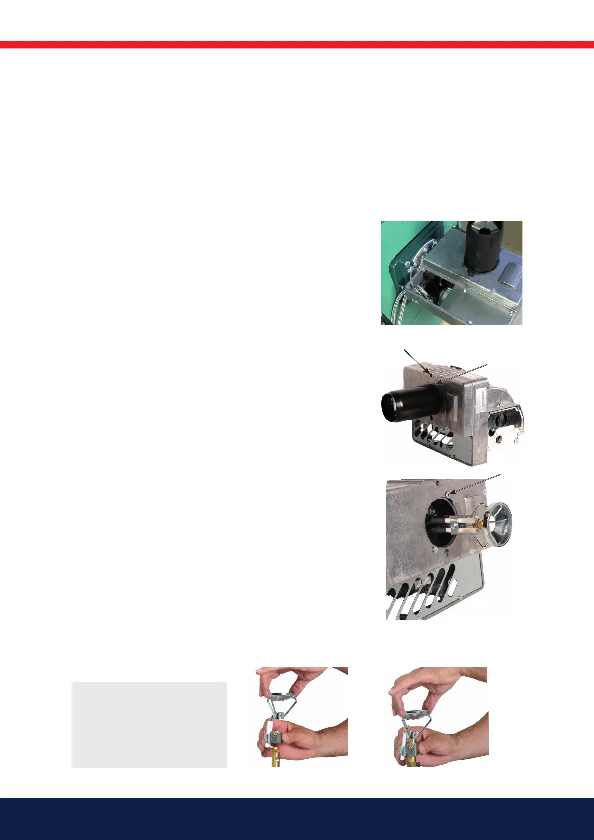 During servicing, the burner can be hung from the screw in the burner fl ange.