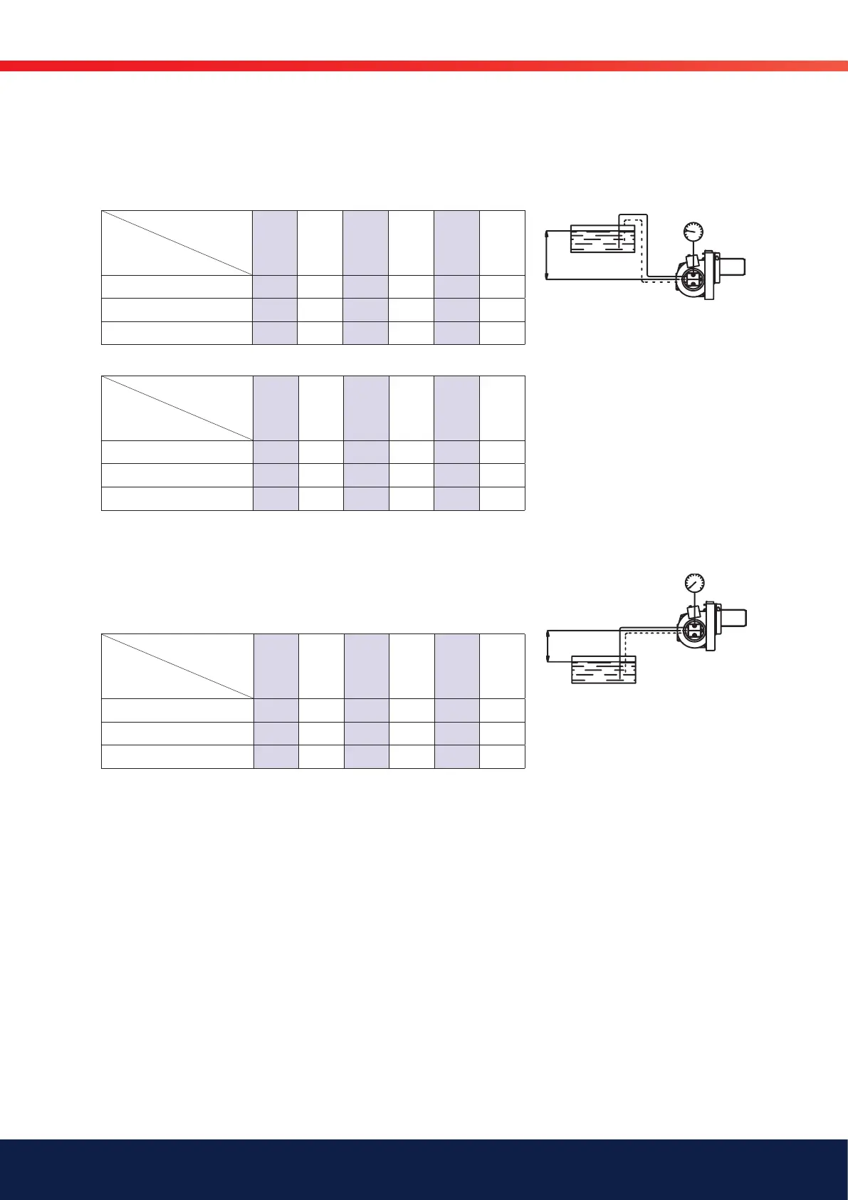 The suction line tables consist of theoretically calculated values where the