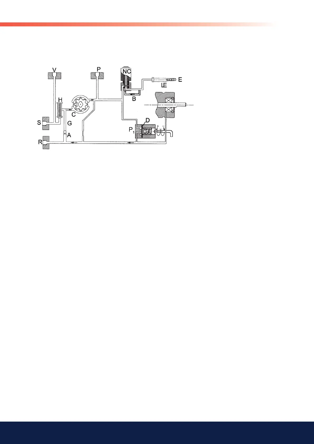 through the filter (H) to the gear wheel pump’s suction side (C).