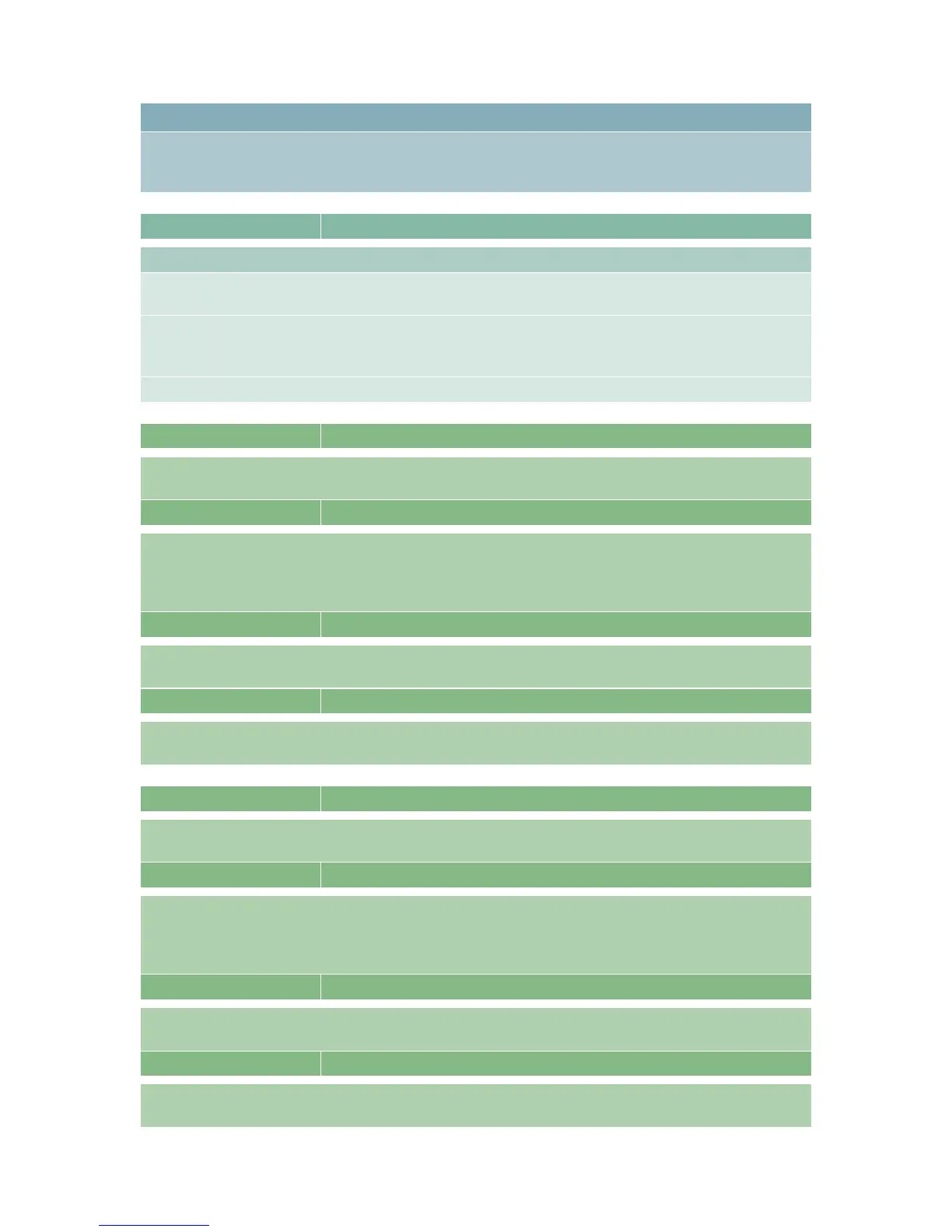 Table 8: programme setpoint