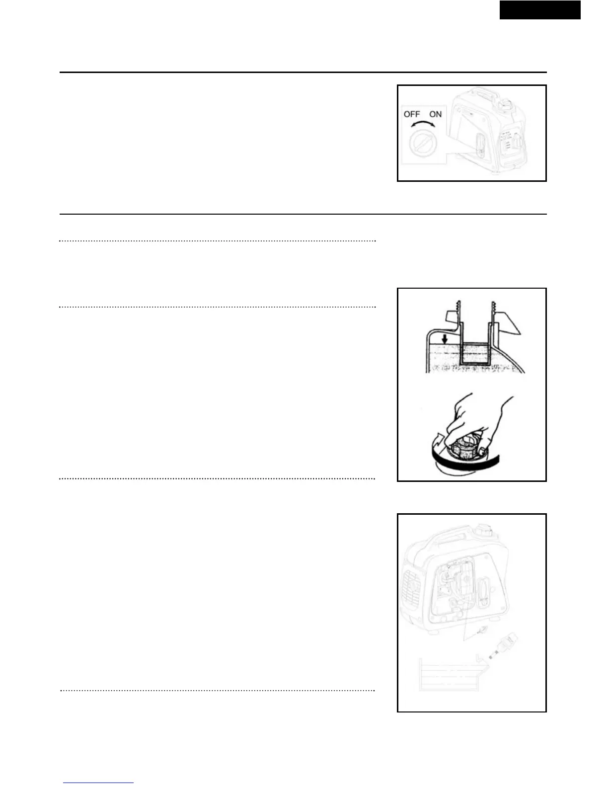 • Si le niveau de carburant est bas, remplissez le réservoir de