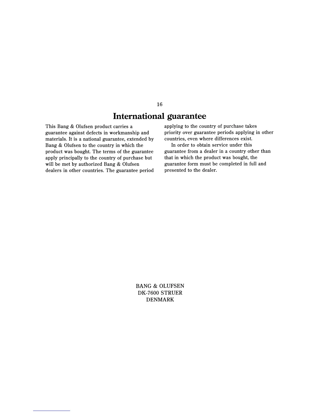 Beogram CD 5500 - Bang & Olufsen International Guarantee