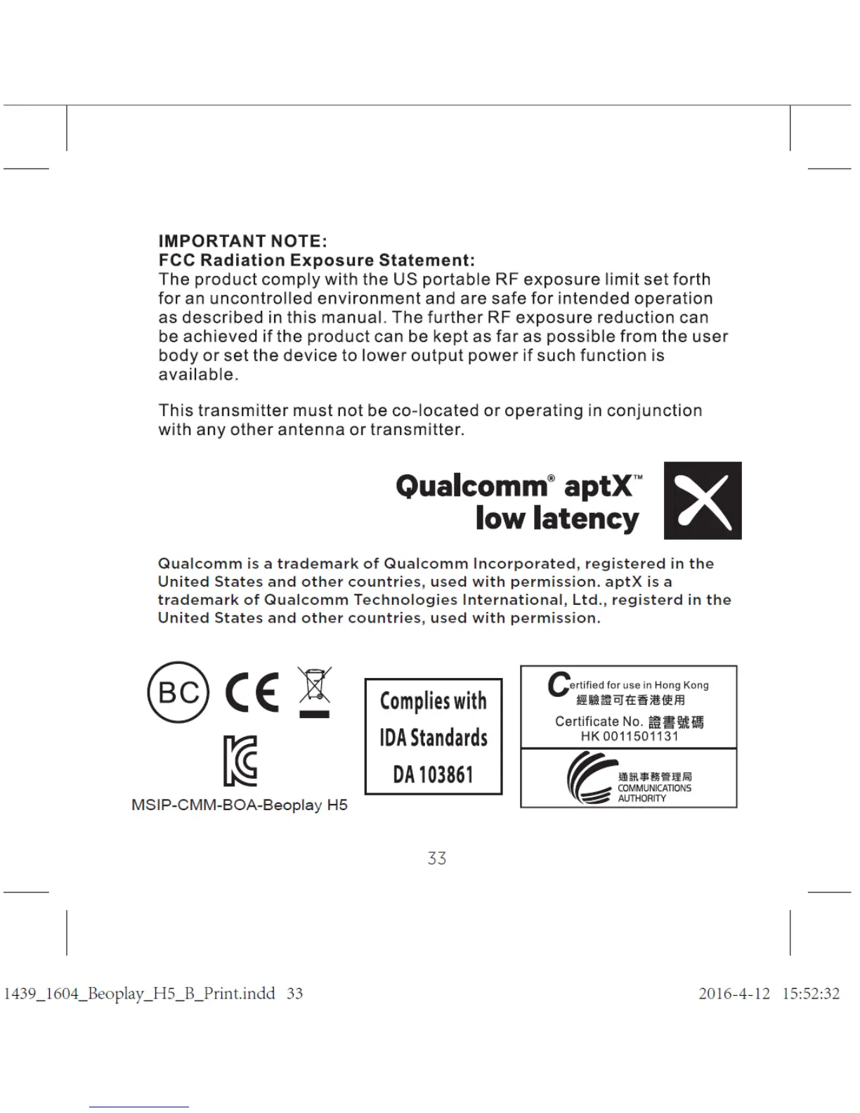 BeoPlay H5 - Certifications
