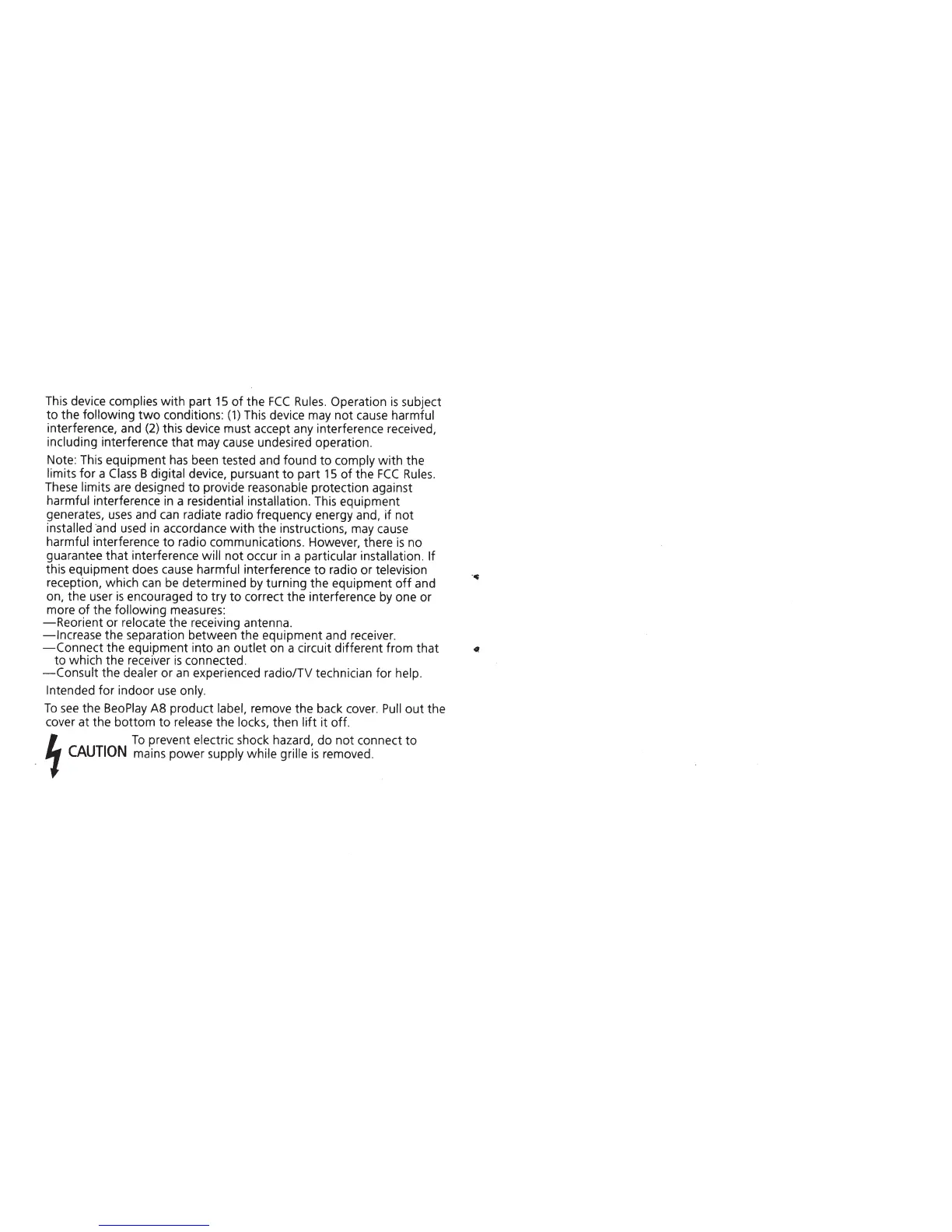 BeoPlay H6 - Regulatory Compliance; FCC Compliance and Cautions