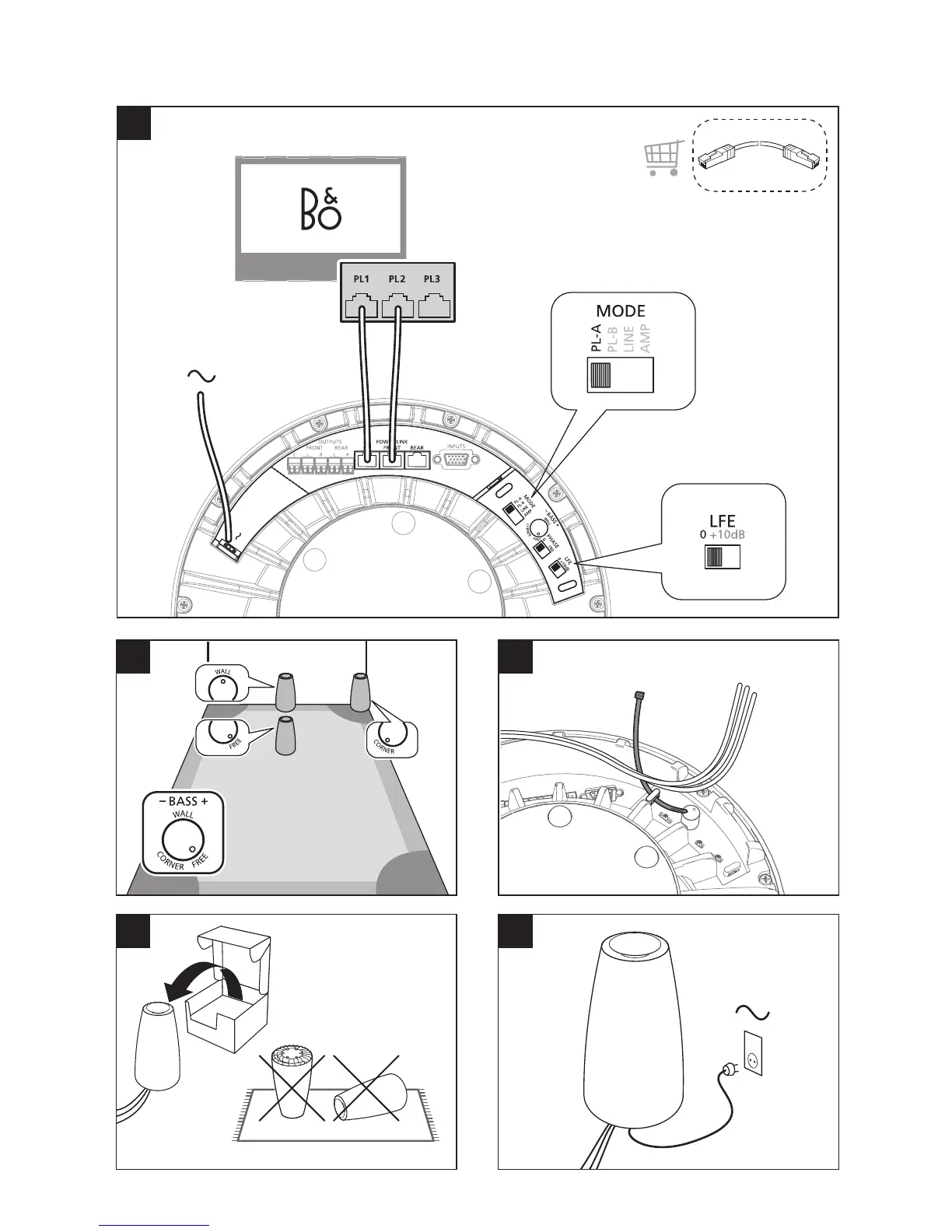 BeoPlay S8 - Advanced Configuration Options; Connecting Multiple Bang & Olufsen Speakers; Bass Level Adjustment by Room Placement; Power Connection and Cable Management