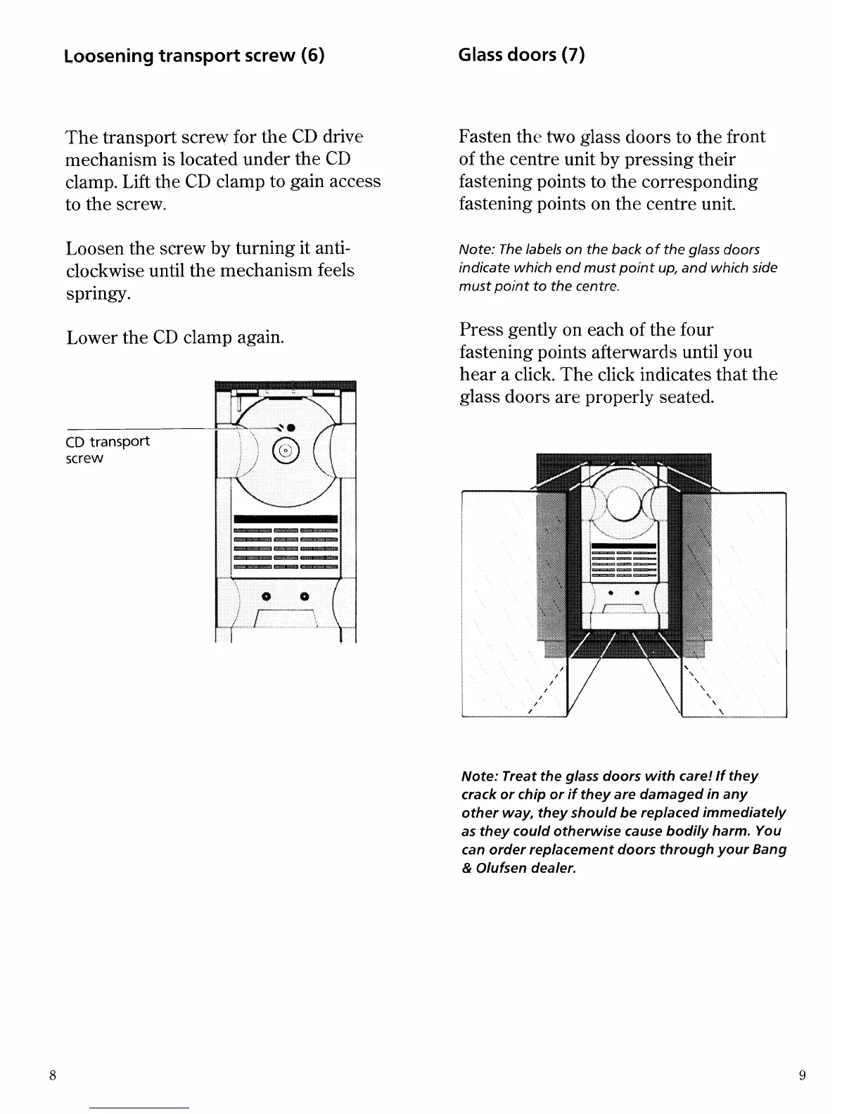 BeoWorld Beosystem 2500 - Loosening Transport Screw; Glass Doors