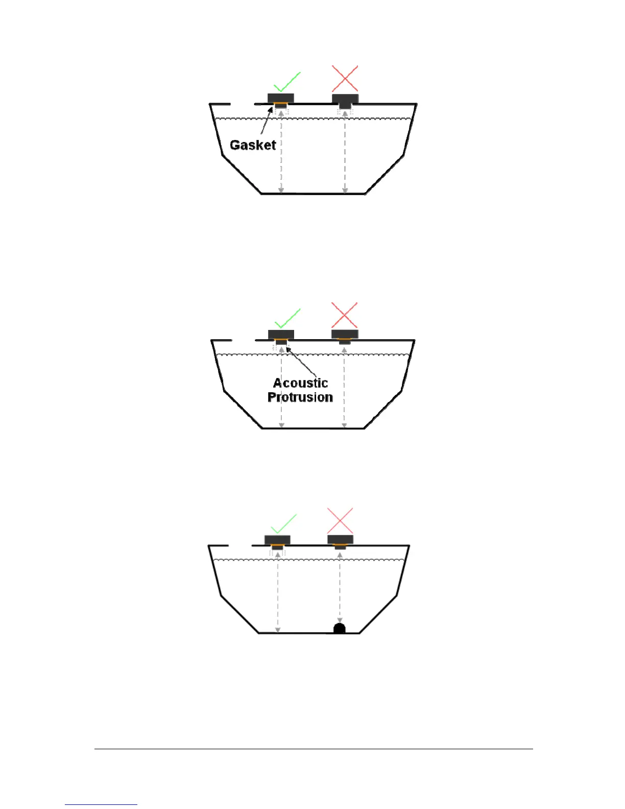 BEP TS1 - Case 3: Correct Gasket and Washers; Case 4: Protrusion Not Touching Frame; Case 5: Measuring to Tank Bottom
