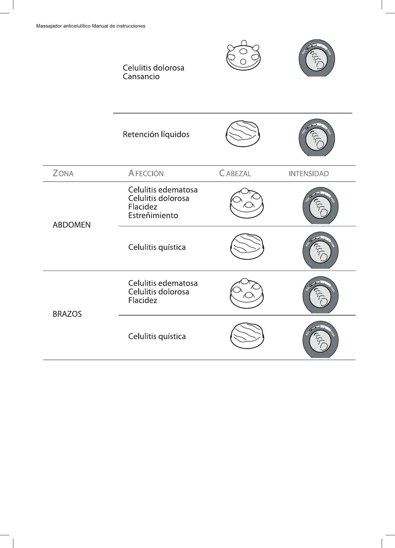 •Realiceunmasajede2-3minutosenabdomeny5minutosenpiernasyglúteos.Puedeguiarseporsusensibilidadparaestablecer