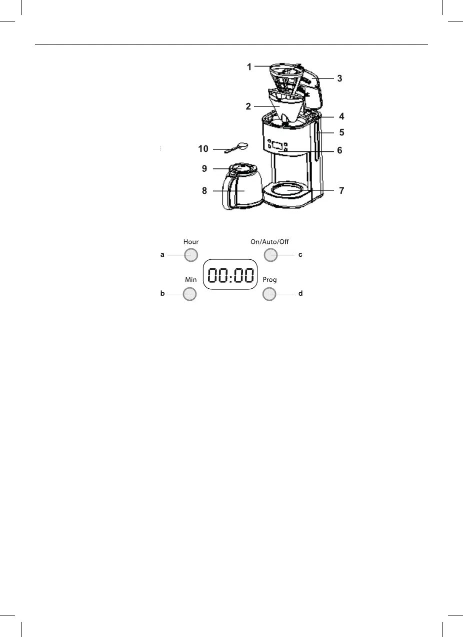 8) Remueva la jarra de la placa calentadora (7) y sirva el café (aproximadamente un minuto después del prin-