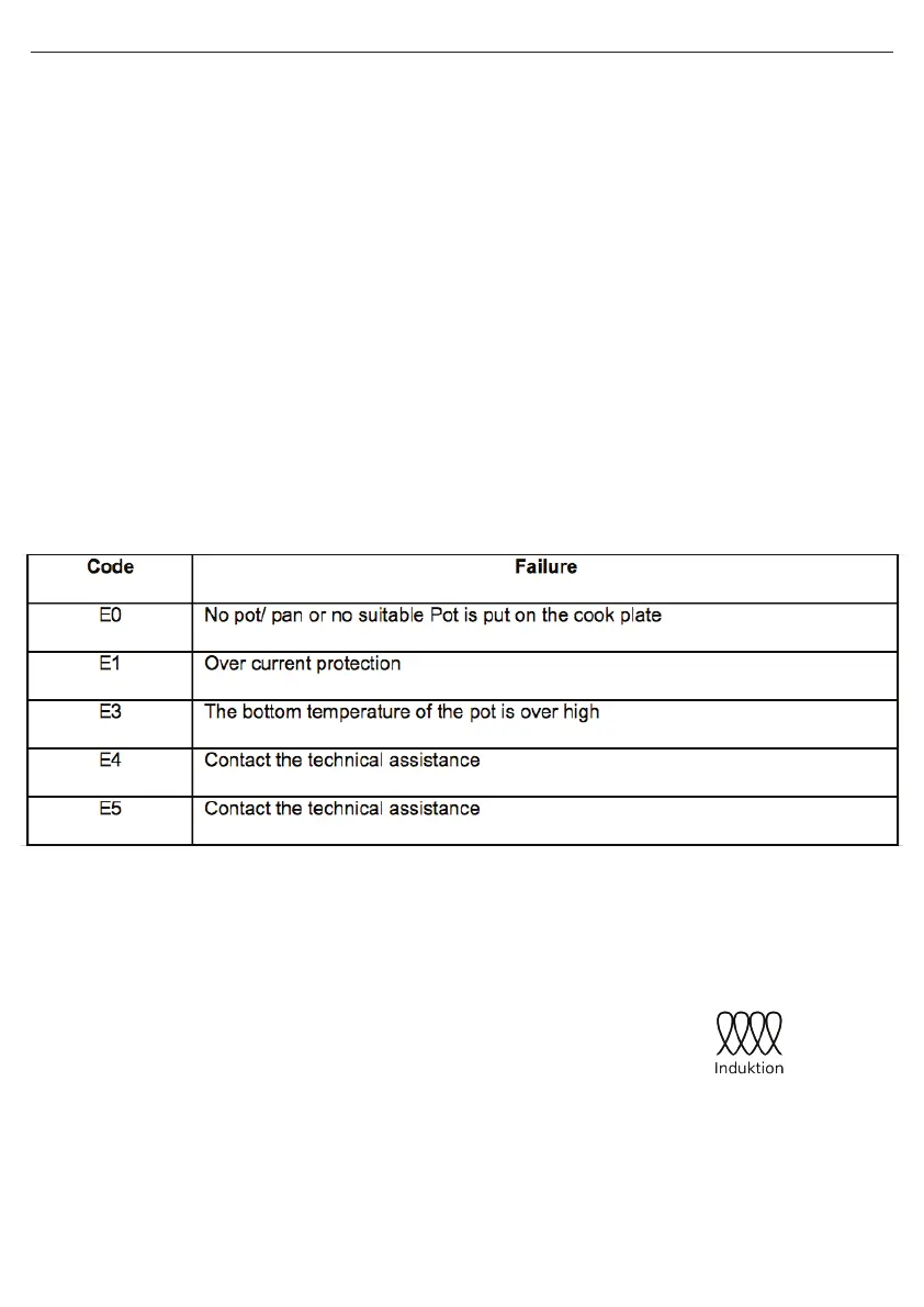 If an abnormality comes up, the induction cooker will enter protective mode automatically and di-