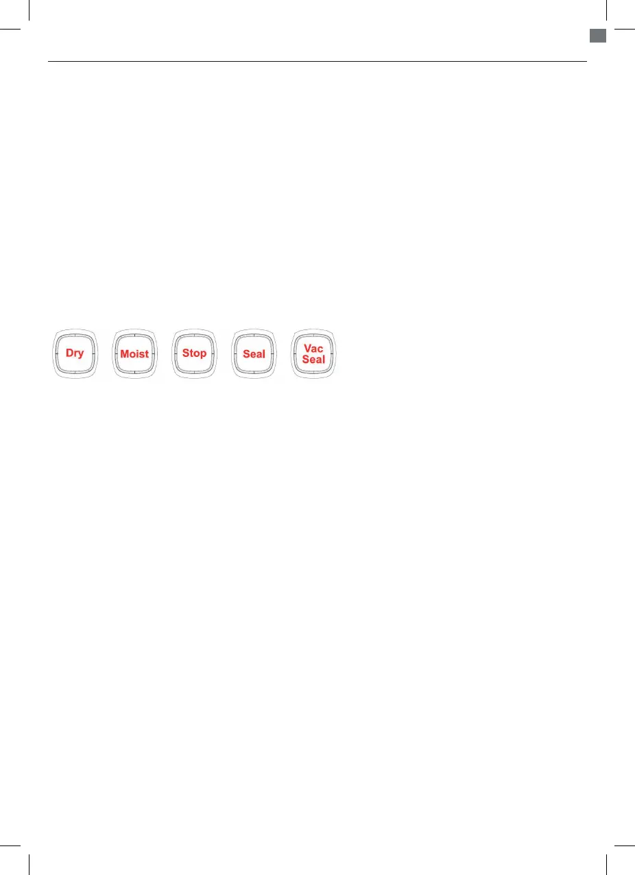 Για να σφραγίσετε τρόφιμα με υγρασία πιέστε το κουμπί Moist και η μπλε ενδεικτική λυχνία ανάβει.