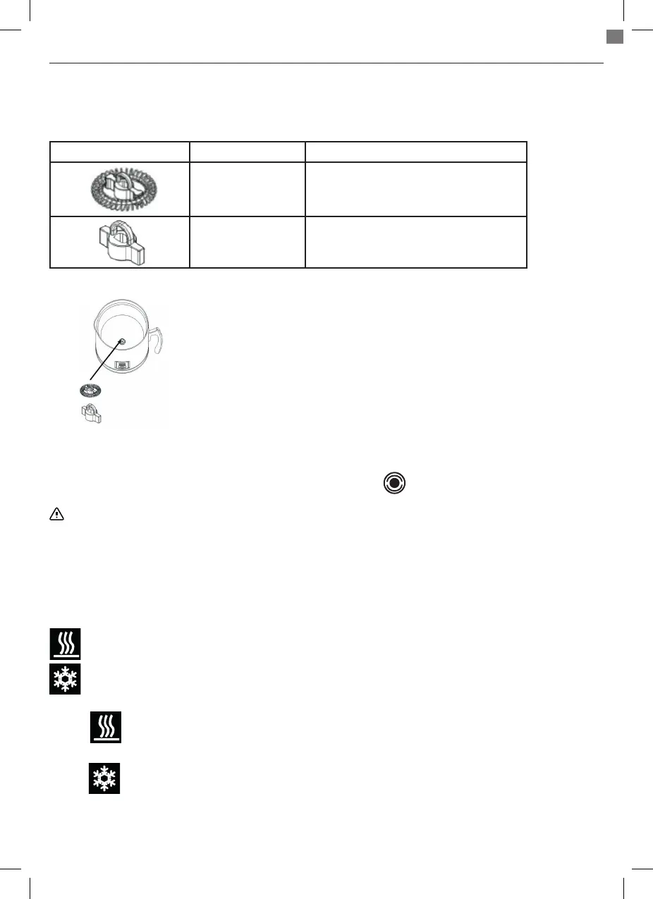 Funkce s plastovým míchacím příslušenstvím se používá pouze pro ohřev mléka, výrobu horké čokolády