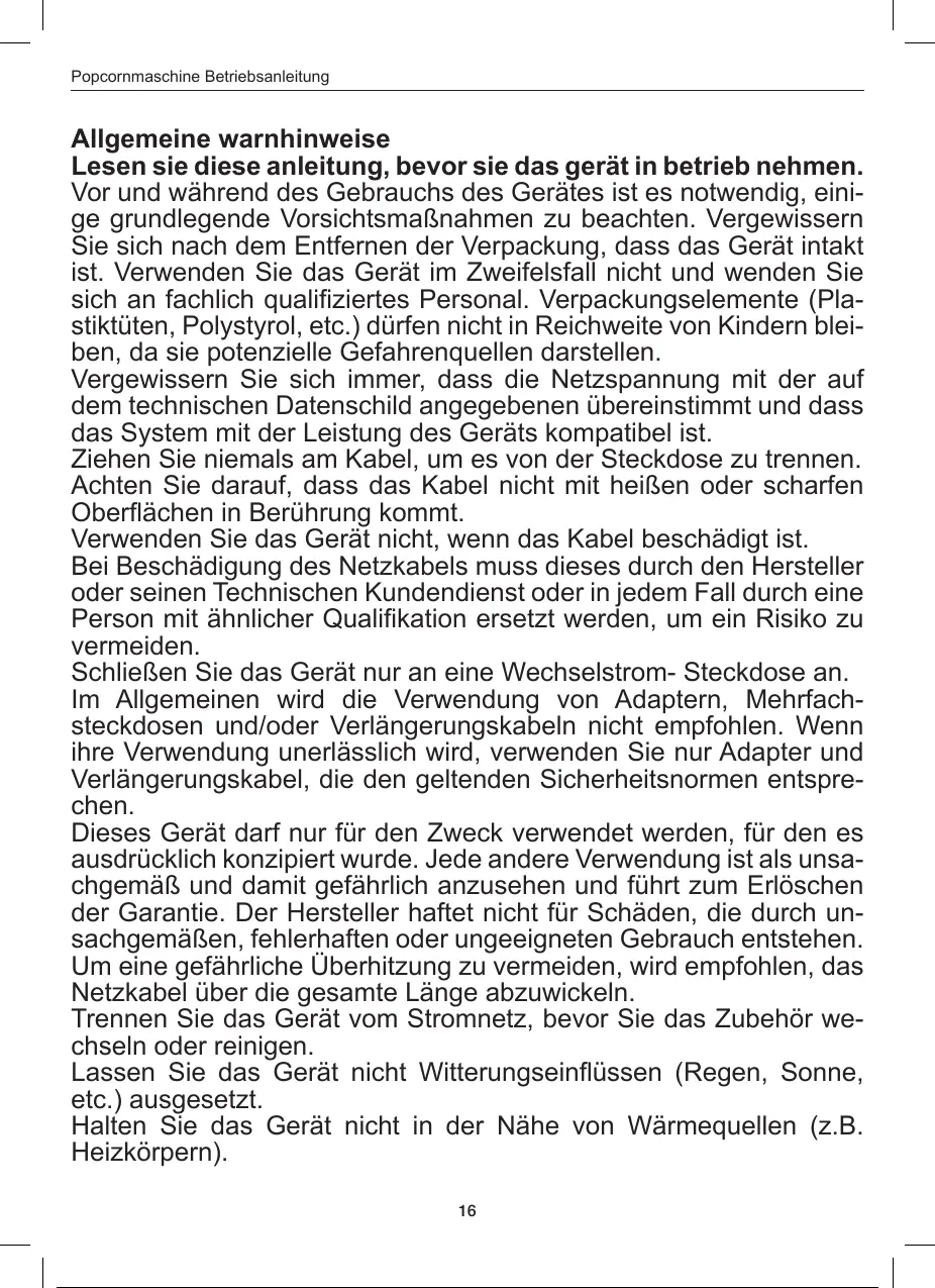 Popcornmaschine Betriebsanleitung