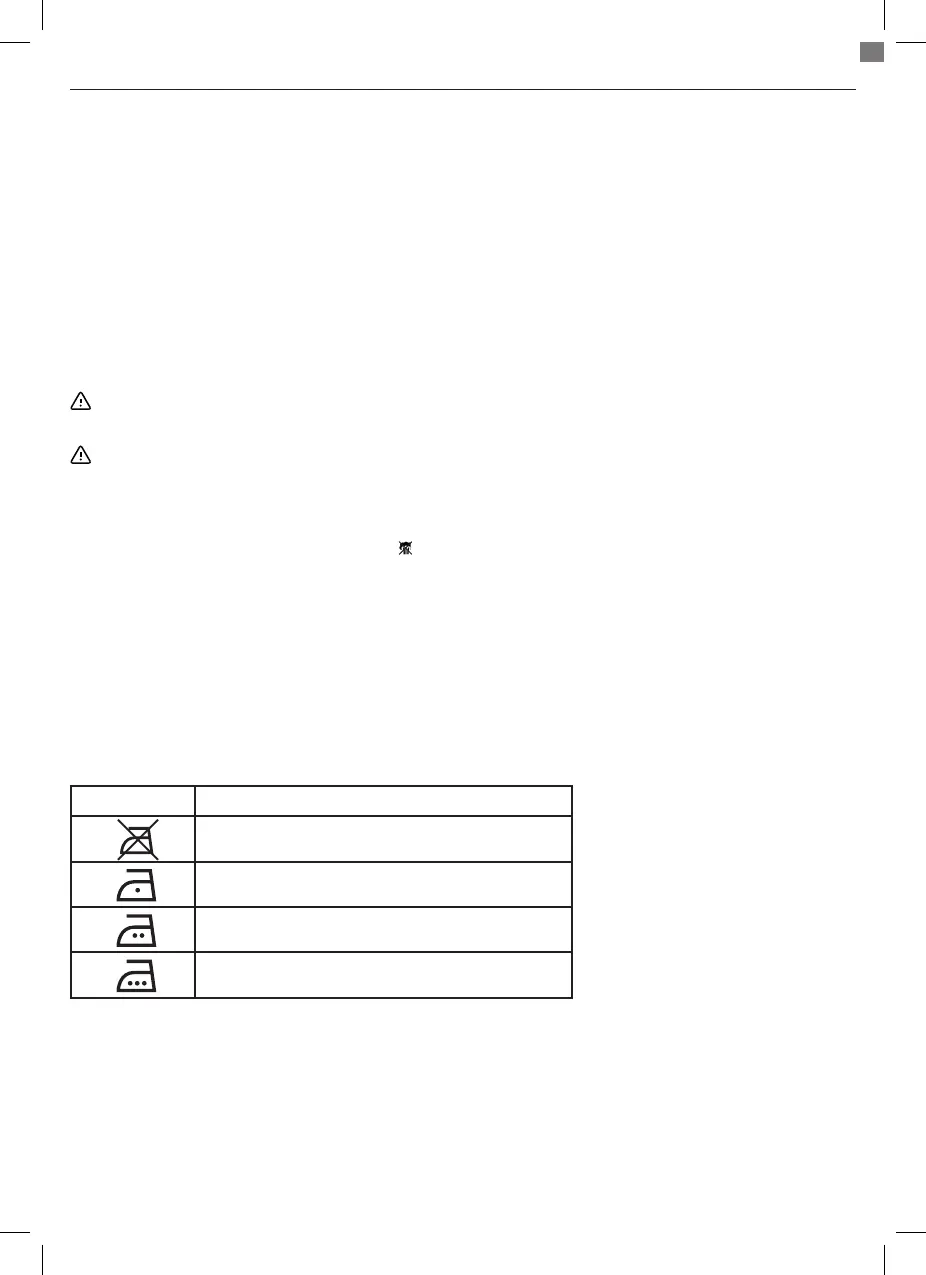 Consulter toujours la plaquette de lavage et repassage située à l’intérieur des vêtements à repasser. Si les