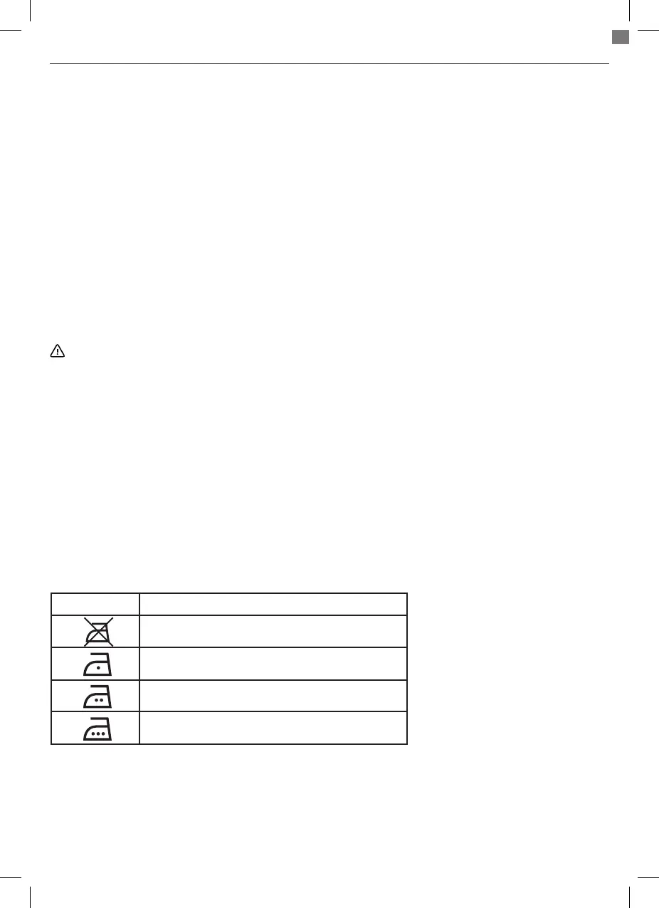 Beziehen Sie sich immer auf die Wasch- und Bügelplatte, die sich im Inneren der Bügelwäsche bendet. Wenn