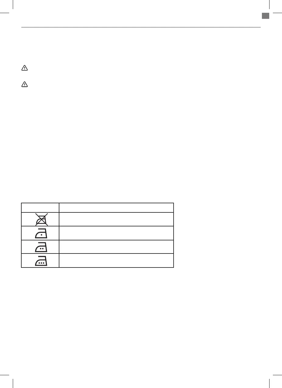 Beziehen Sie sich immer auf die Wasch- und Bügelplatte, die sich im Inneren der Bügelwäsche bendet. Wenn