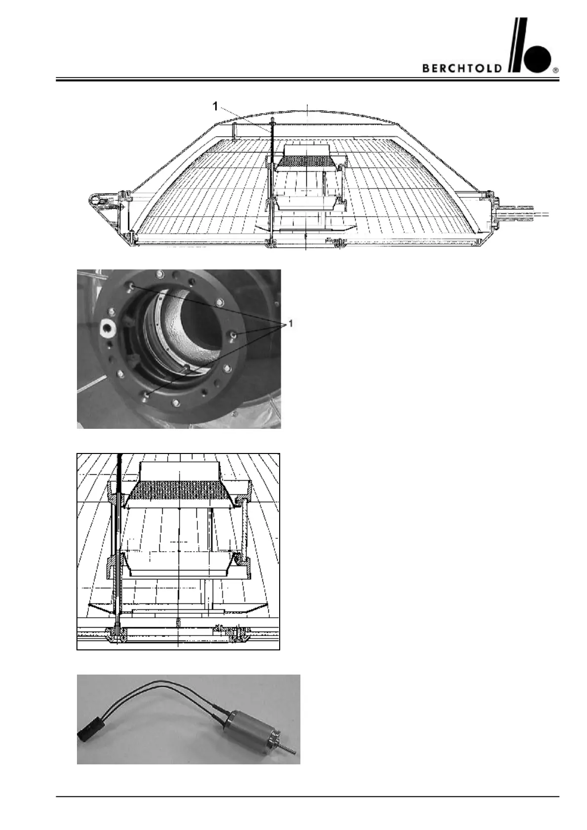 D.C. motor with cable and connector, mounted in the