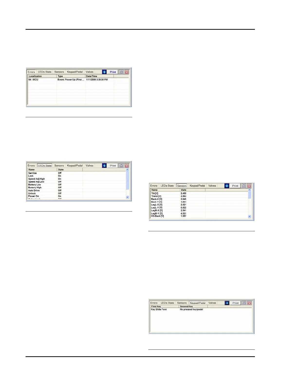 Selecting this option displays the Sensors