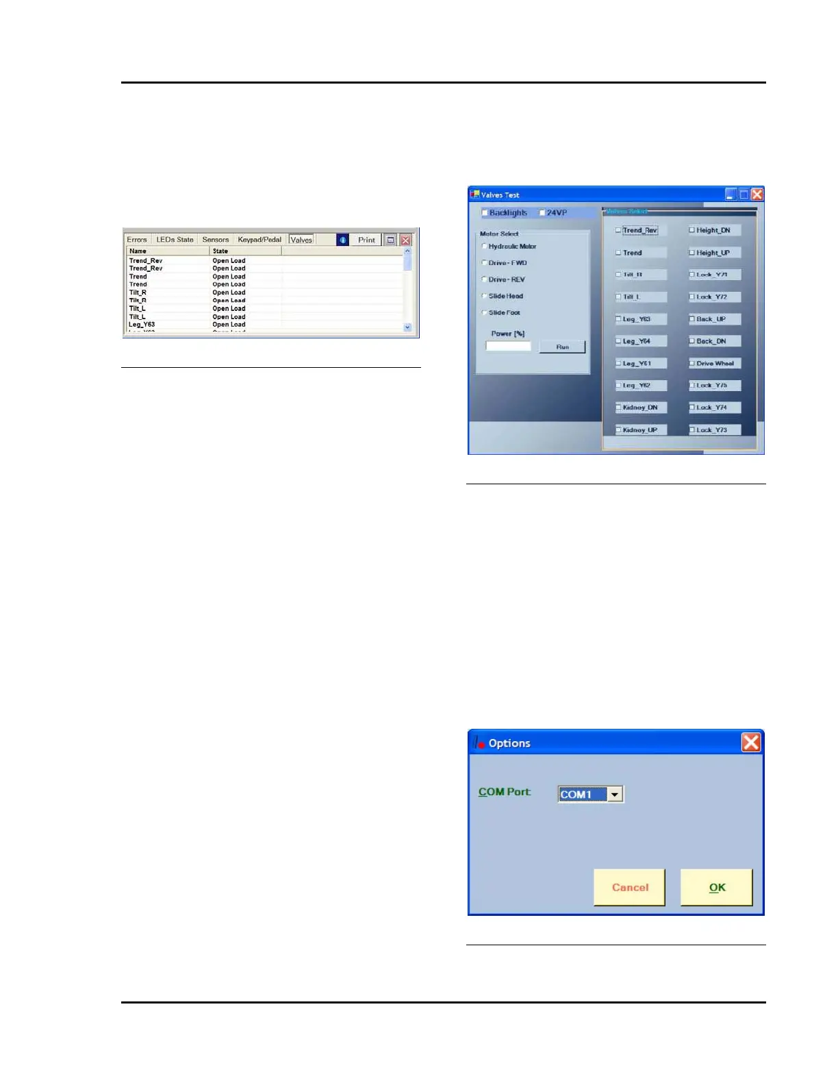 Valves Test Screen. This screen