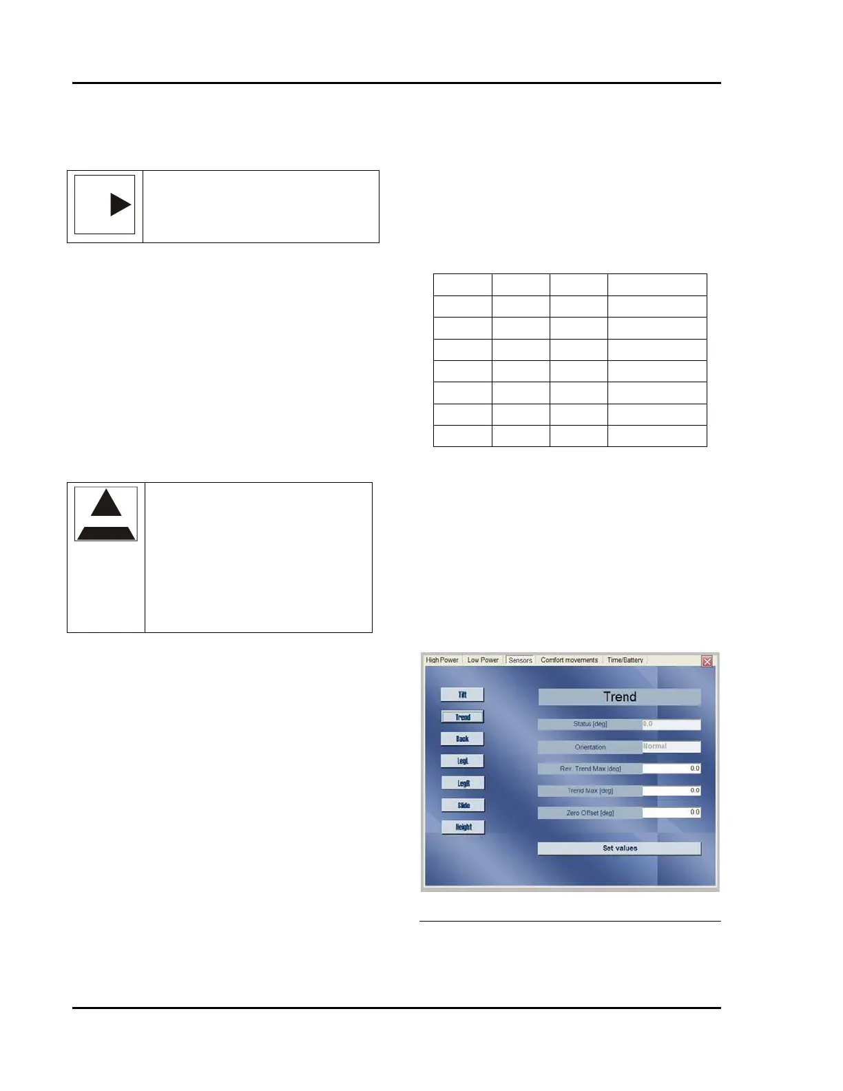 table is tilted slightly to the left (negative tilt) the