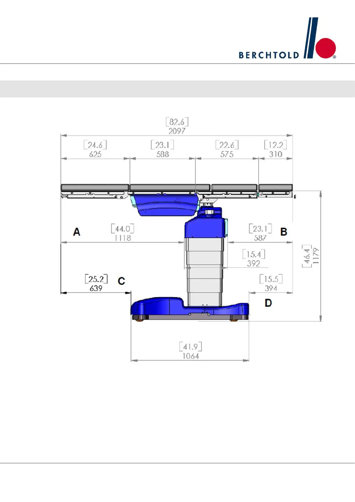 Dimensions displayed based on: D850 one-piece long leg plate, kidney elevator, and one-piece back