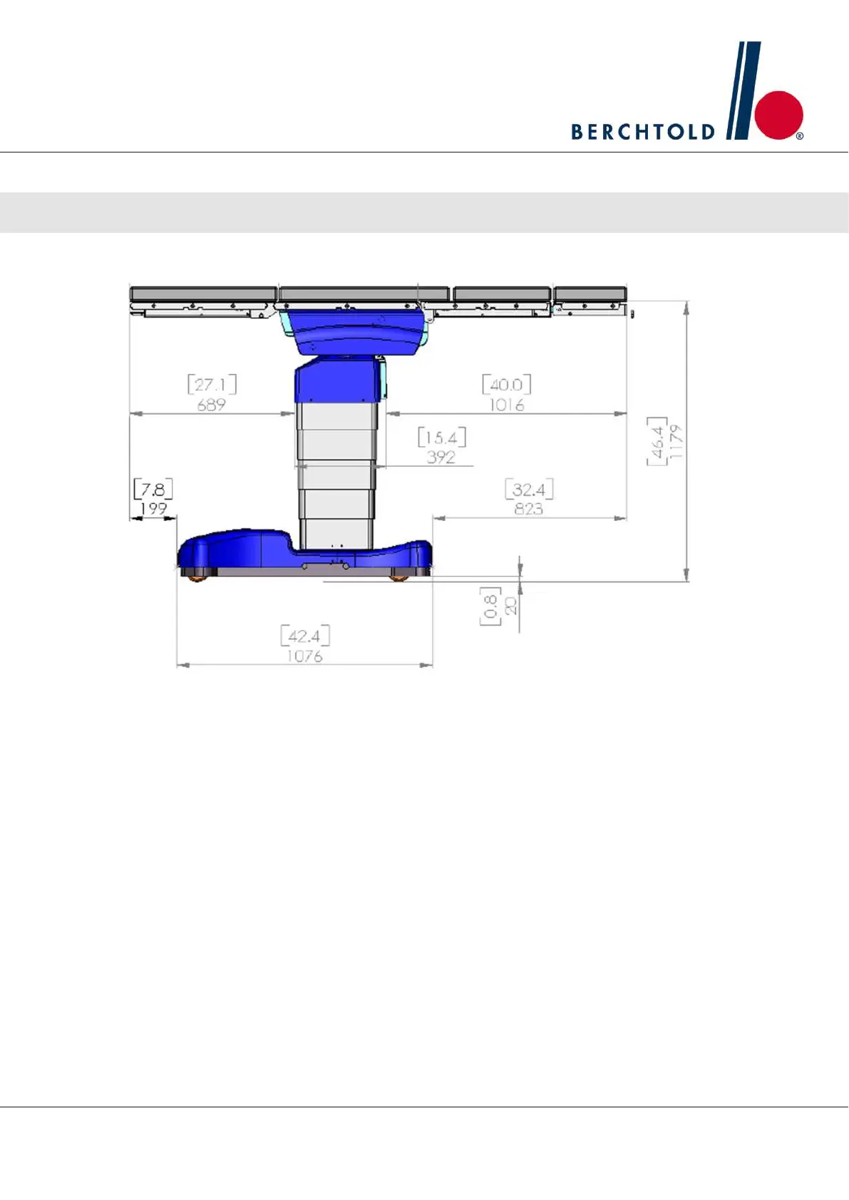 Dimensions displayed based on: D850 one-piece long leg plate, kidney elevator, and one-piece back