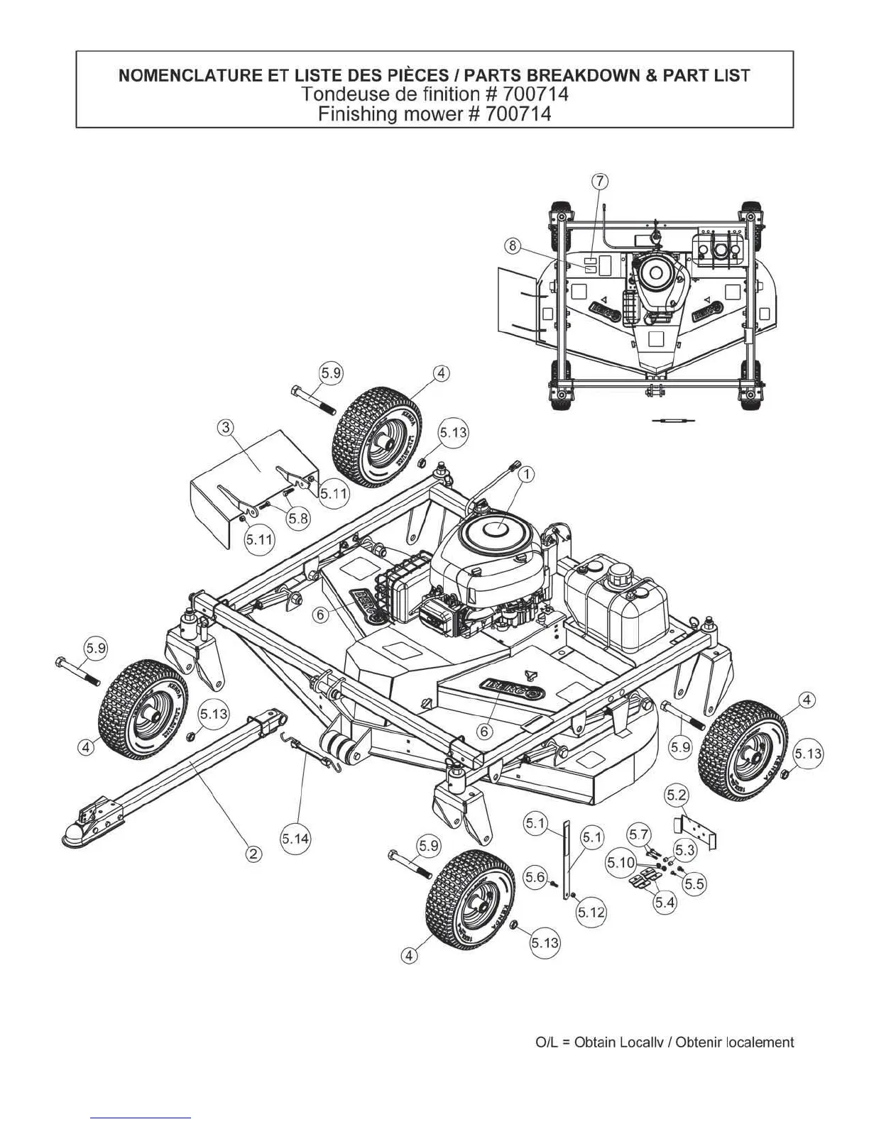 Bercomac 700714 - Parts Breakdown and List (Finishing Mower #700714); Finishing Mower Parts Diagram
