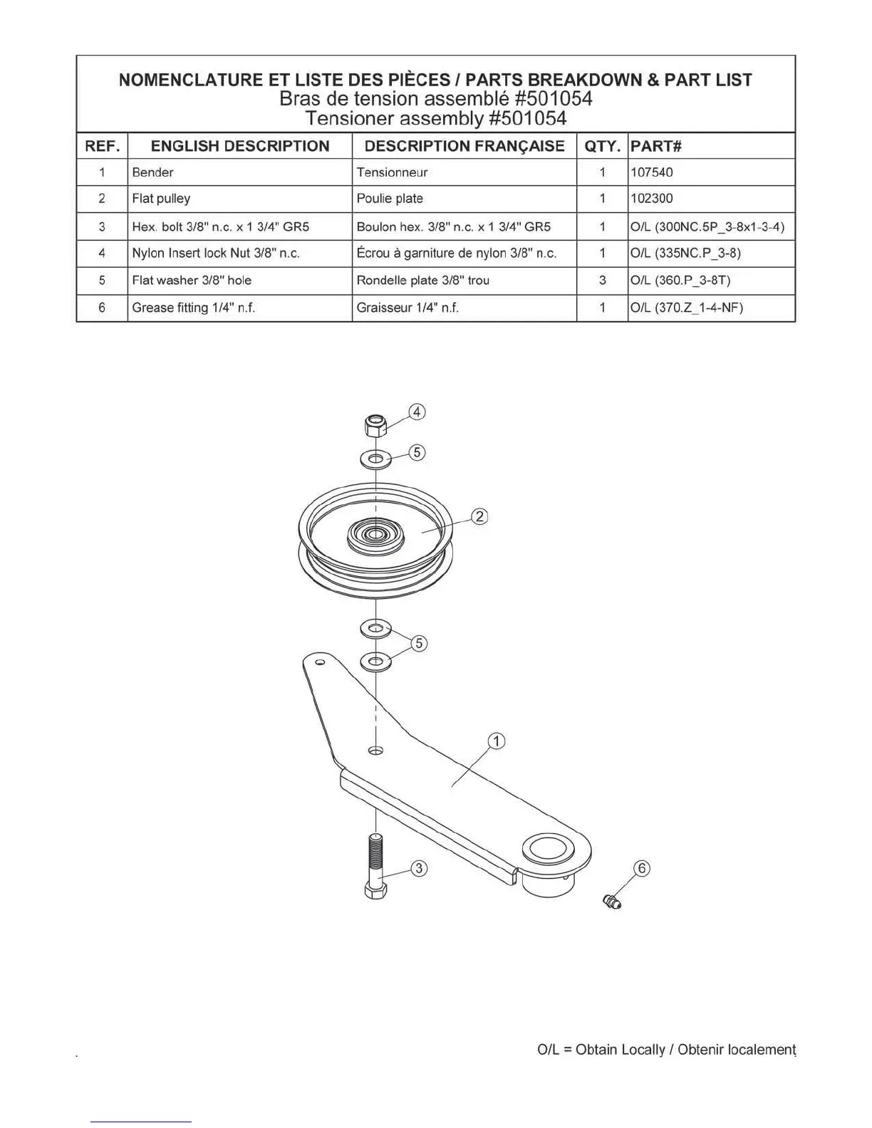 Bercomac 700714 - Tensioner Assembly Parts Breakdown; Tensioner Assembly Diagram and Parts List