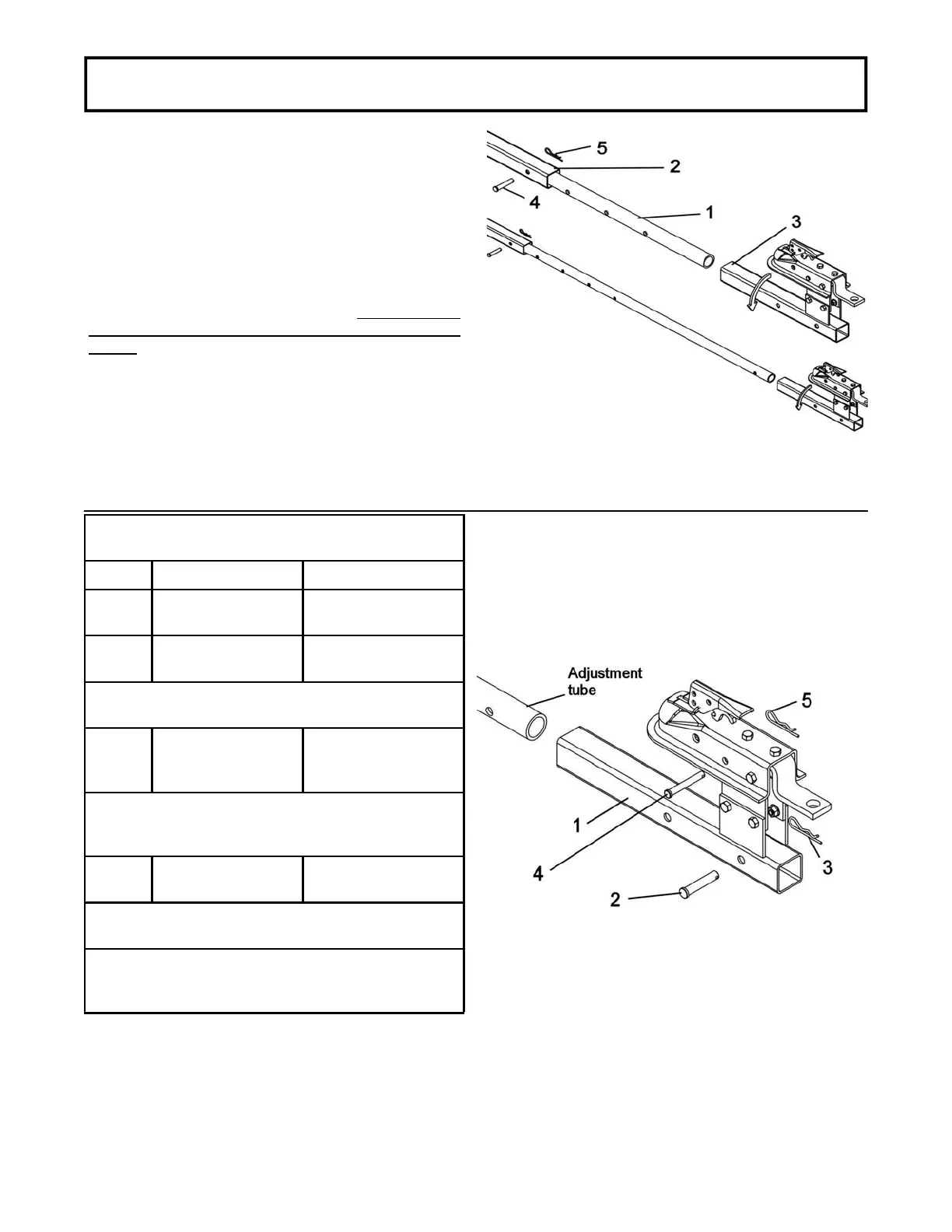hitch support (item 3) on the adjustment tube. Do not