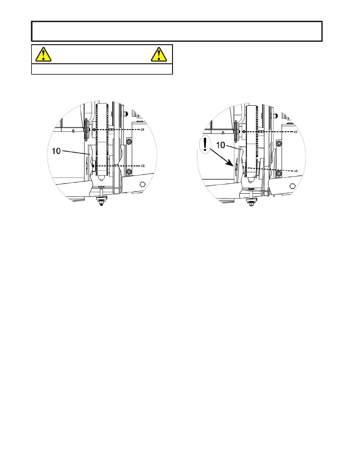 The following figures (side views) show a good or improper adjustment of the pulleys in the reduction box (item