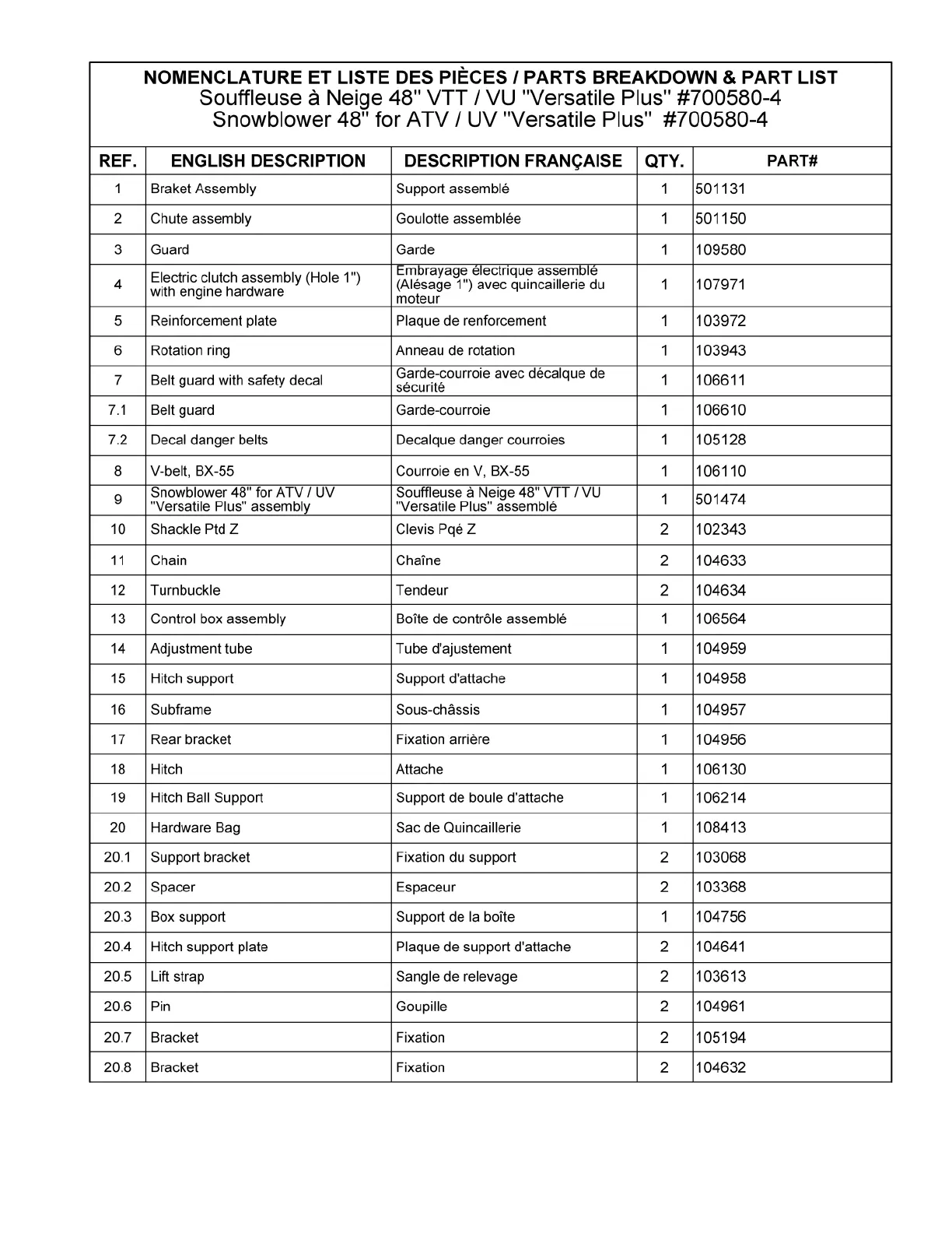 Les numéros ne sont pas disponibles pour la vente. Au besoin, veuillez commander les numéros de pièces séparément.