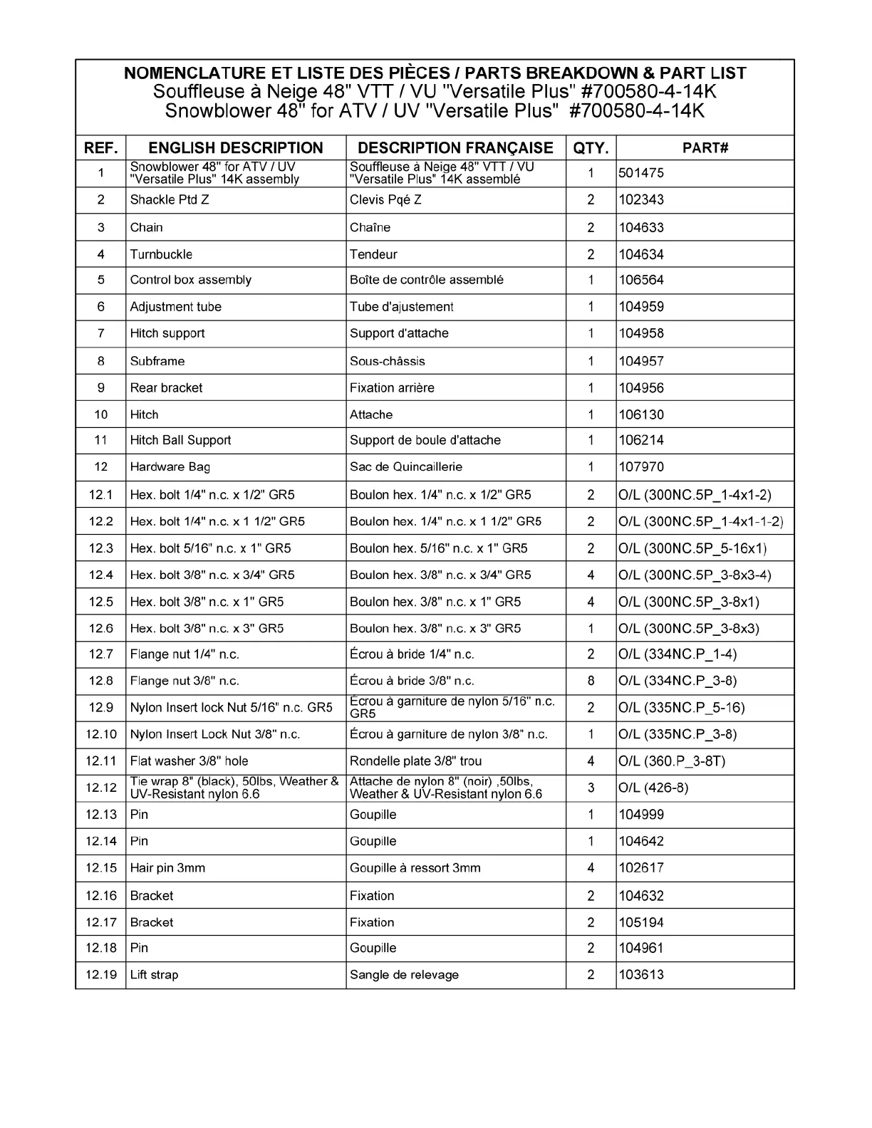Les numéros ne sont pas disponibles pour la vente. Au besoin, veuillez commander les numéros de pièces séparément.