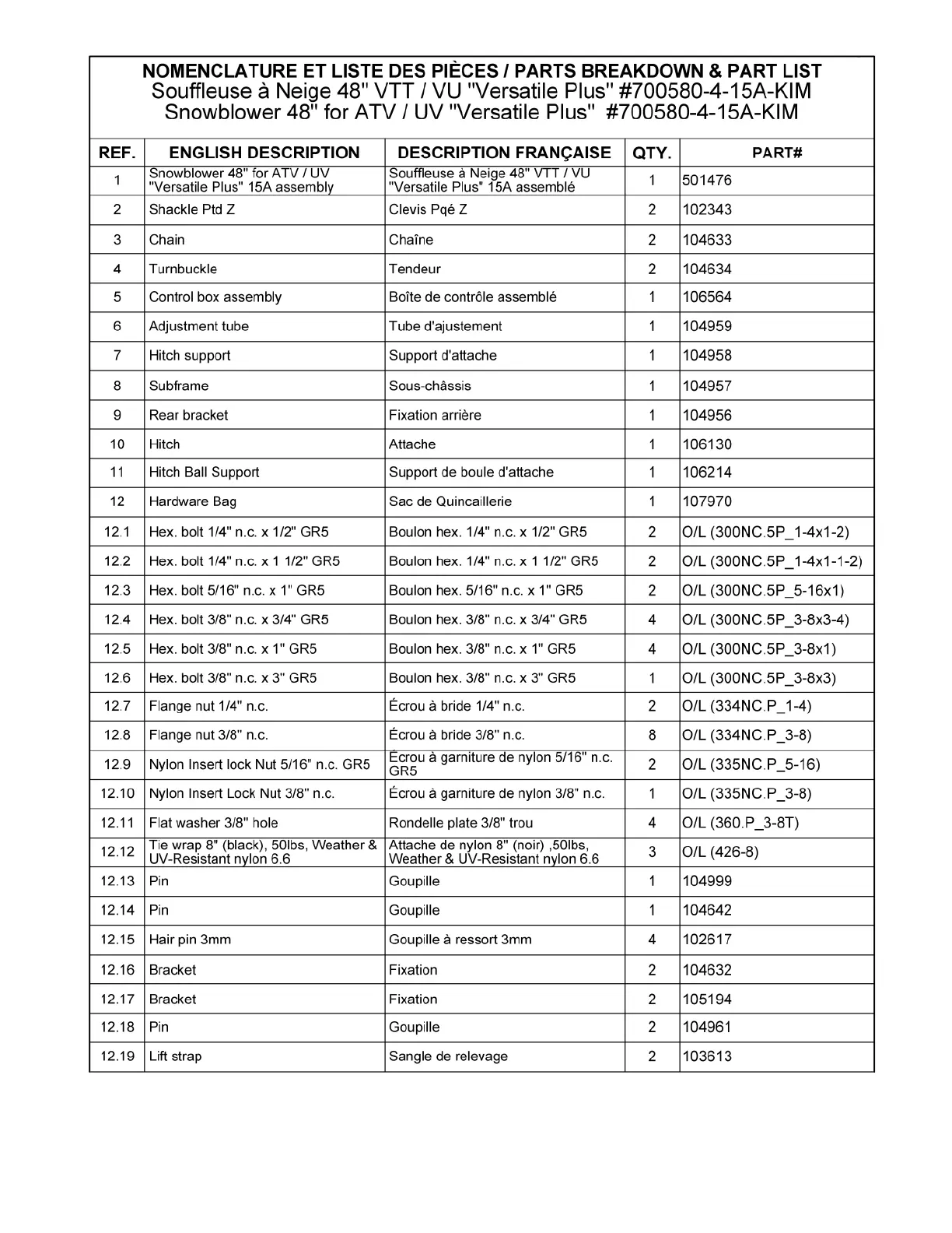 Les numéros ne sont pas disponibles pour la vente. Au besoin, veuillez commander les numéros de pièces séparément.