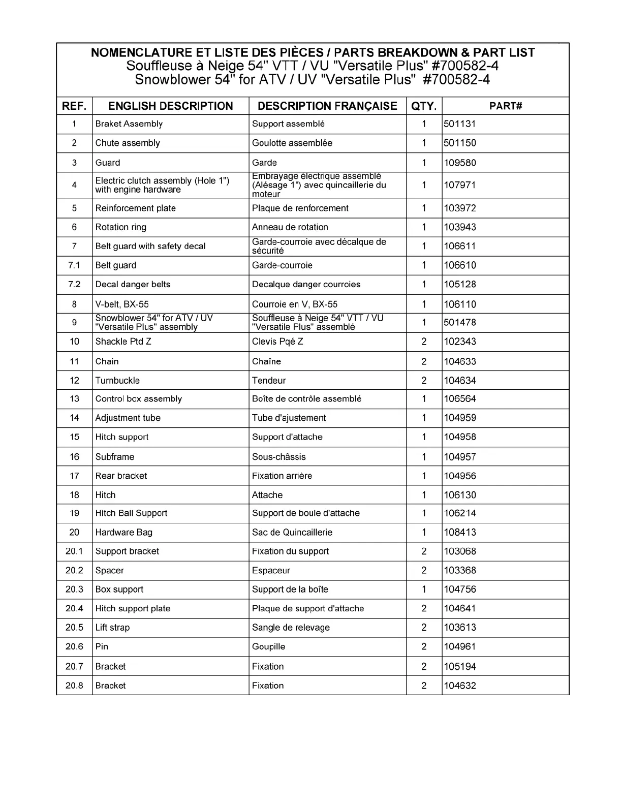 Les numéros ne sont pas disponibles pour la vente. Au besoin, veuillez commander les numéros de pièces séparément.
