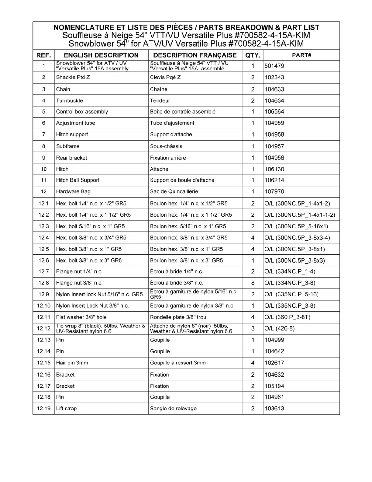 Les numéros ne sont pas disponibles pour la vente. Au besoin, veuillez commander les numéros de pièces séparément.