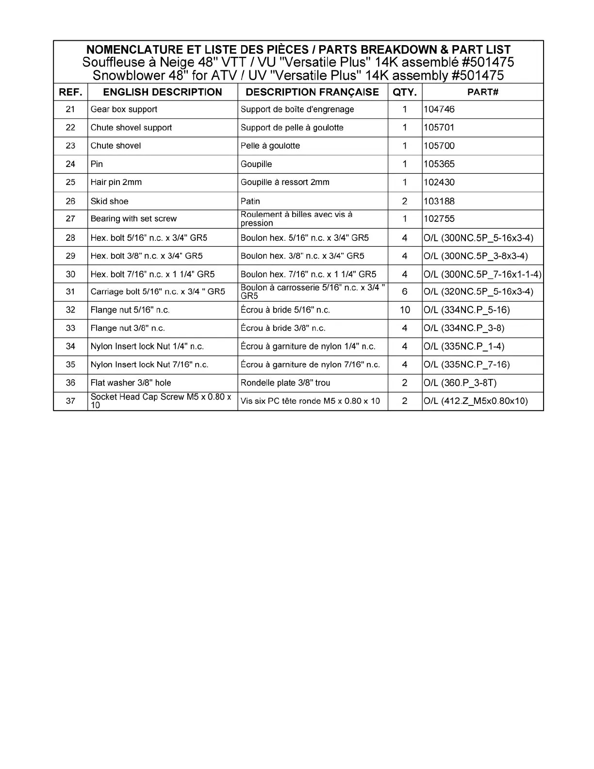 Les numéros ne sont pas disponibles pour la vente. Au besoin, veuillez commander les numéros de pièces séparément.