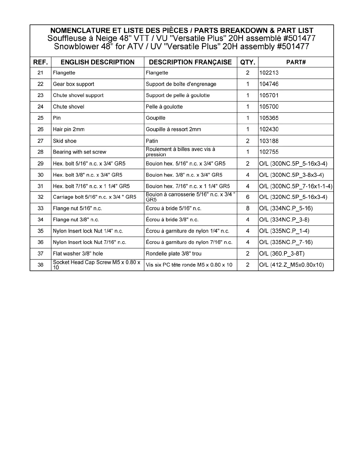 Les numéros ne sont pas disponibles pour la vente. Au besoin, veuillez commander les numéros de pièces séparément.