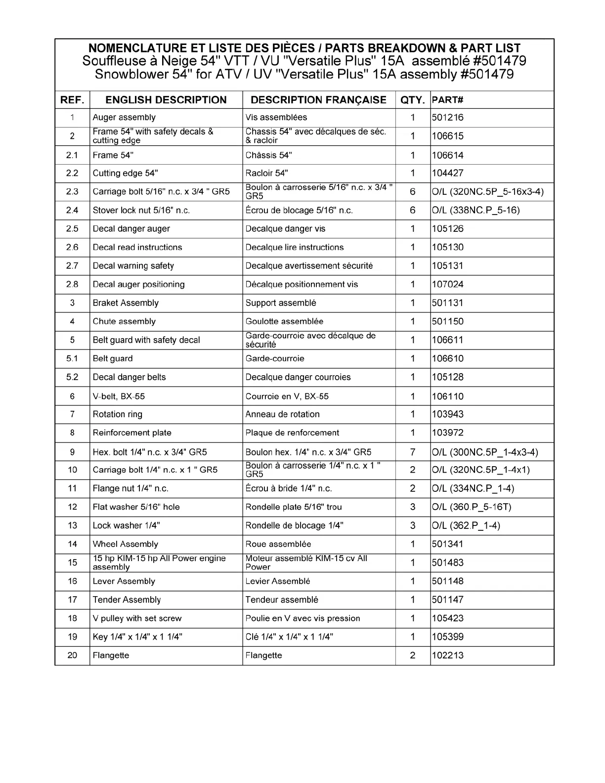 Les numéros ne sont pas disponibles pour la vente. Au besoin, veuillez commander les numéros de pièces séparément.