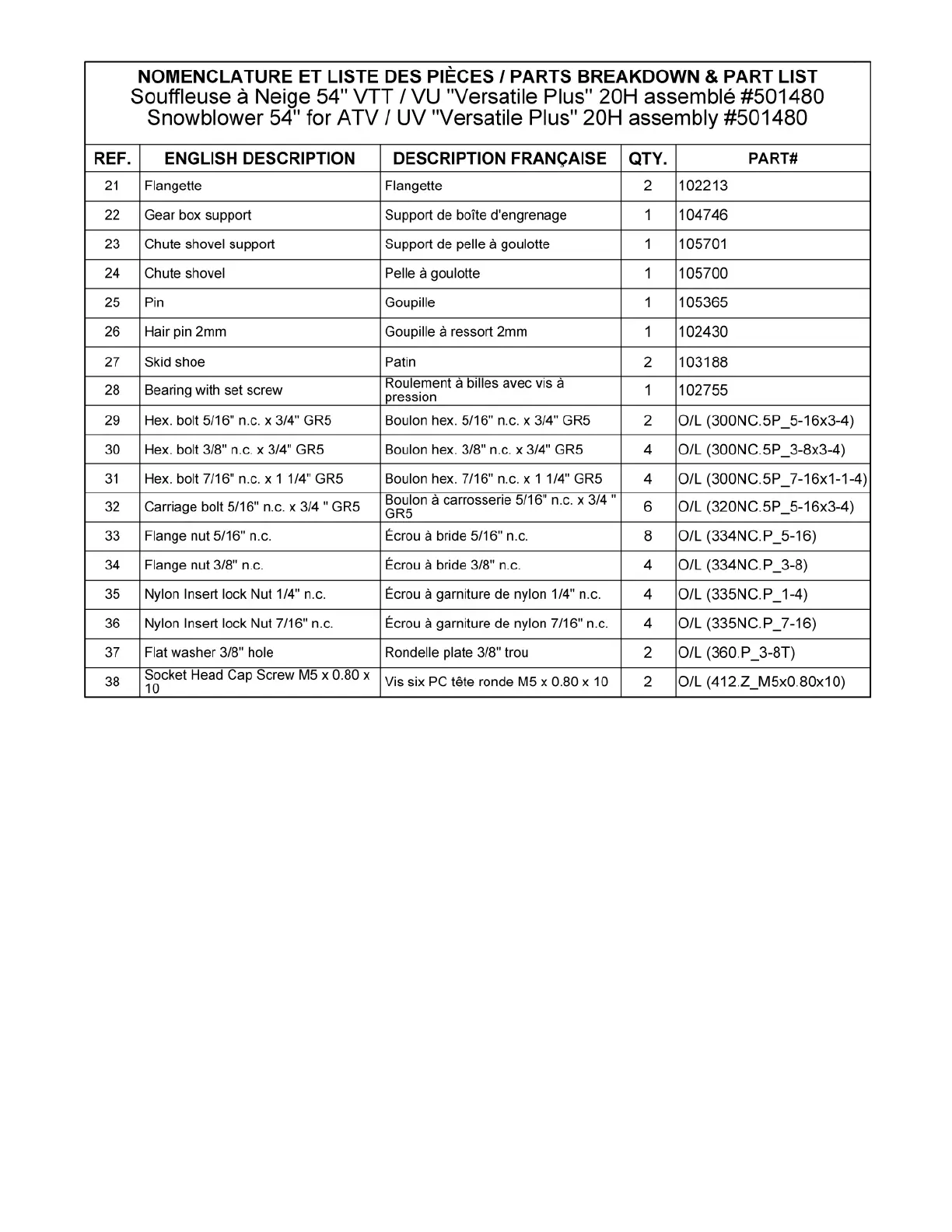 Les numéros ne sont pas disponibles pour la vente. Au besoin, veuillez commander les numéros de pièces séparément.