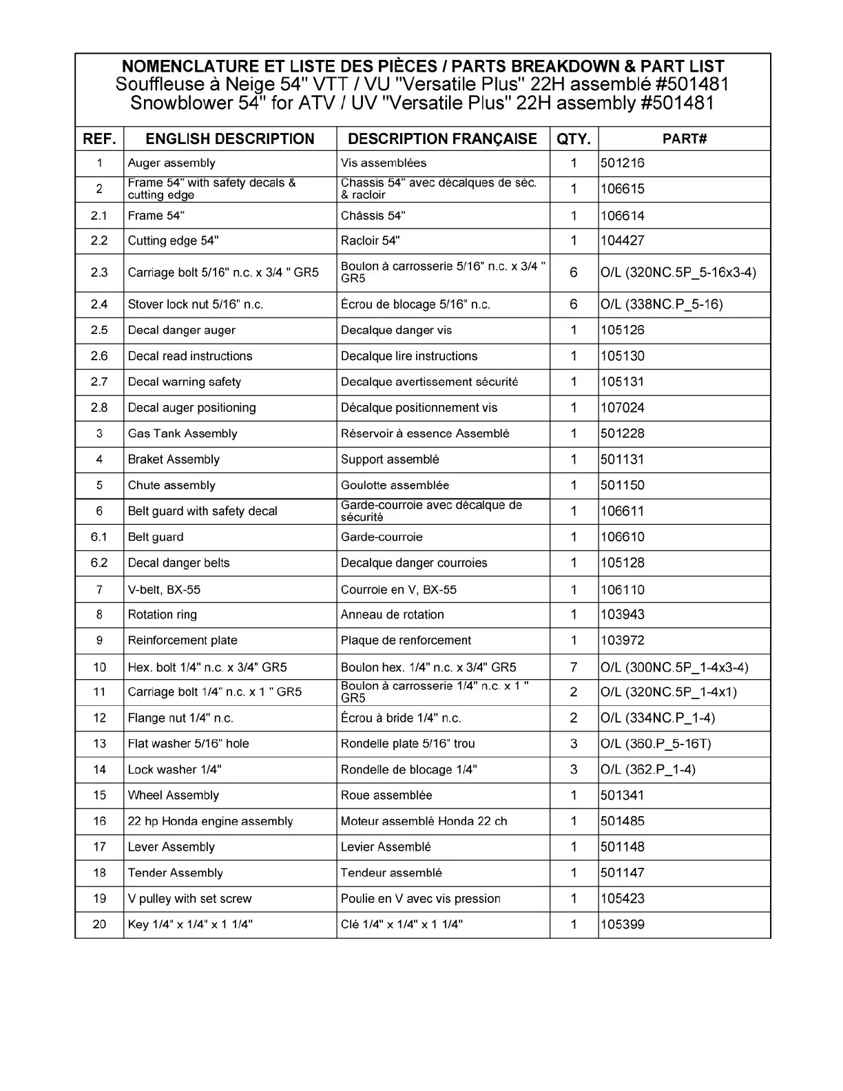 Les numéros ne sont pas disponibles pour la vente. Au besoin, veuillez commander les numéros de pièces séparément.