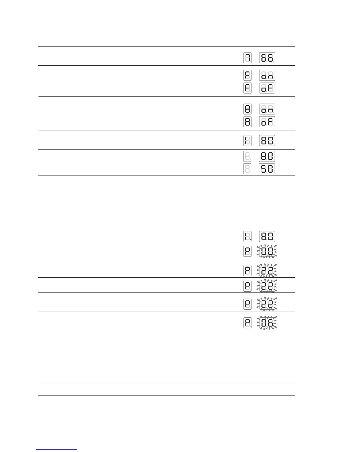 The code P-XX and the corresponding value will alternate on the display.