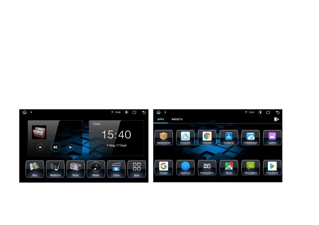 Drücken Sie auf der Vorderseite Anwendung, um Radio, Musik, Video, USB-Wiedergabe, TV (optional)