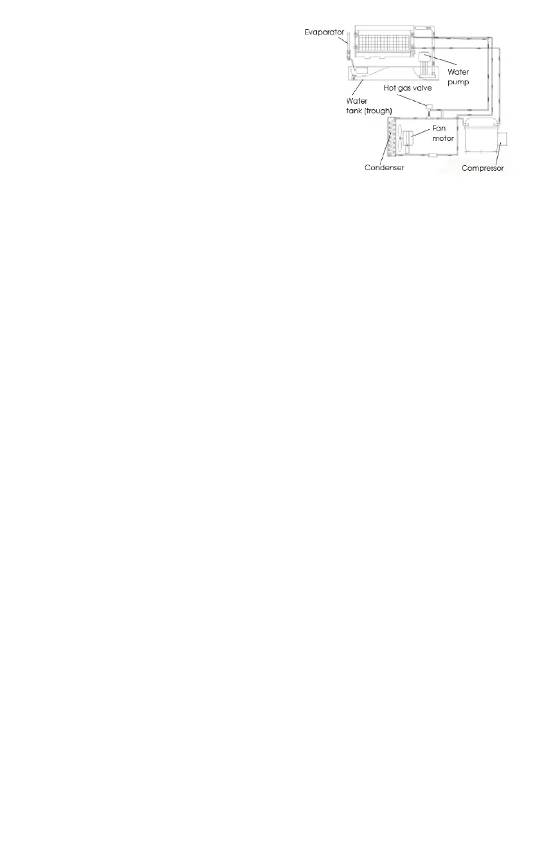 cubes and keep mineral build-up at a minimum. The water pump will then stop. When the hot gas valve