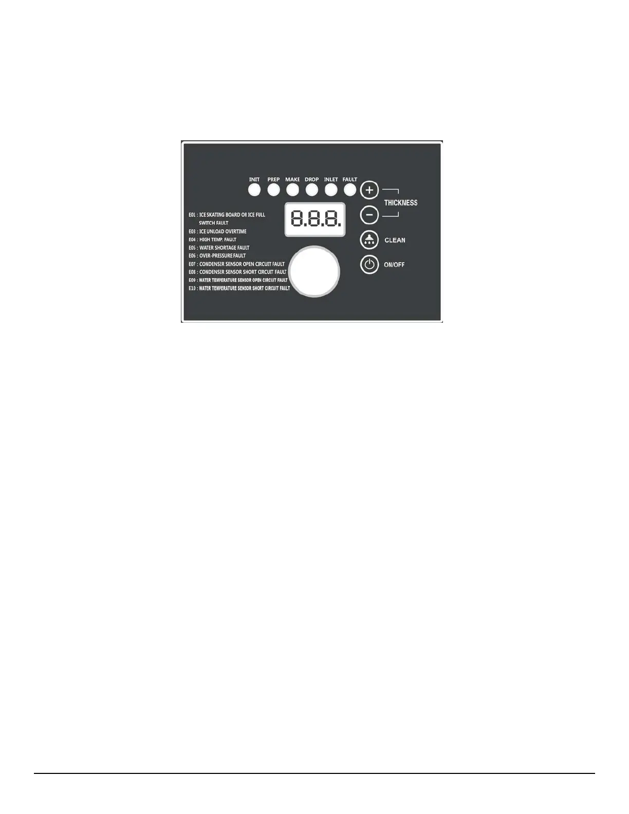 • FULL ICE BIN – The machine will automatically stop when the ice bin is full. The machine will automatically restart when