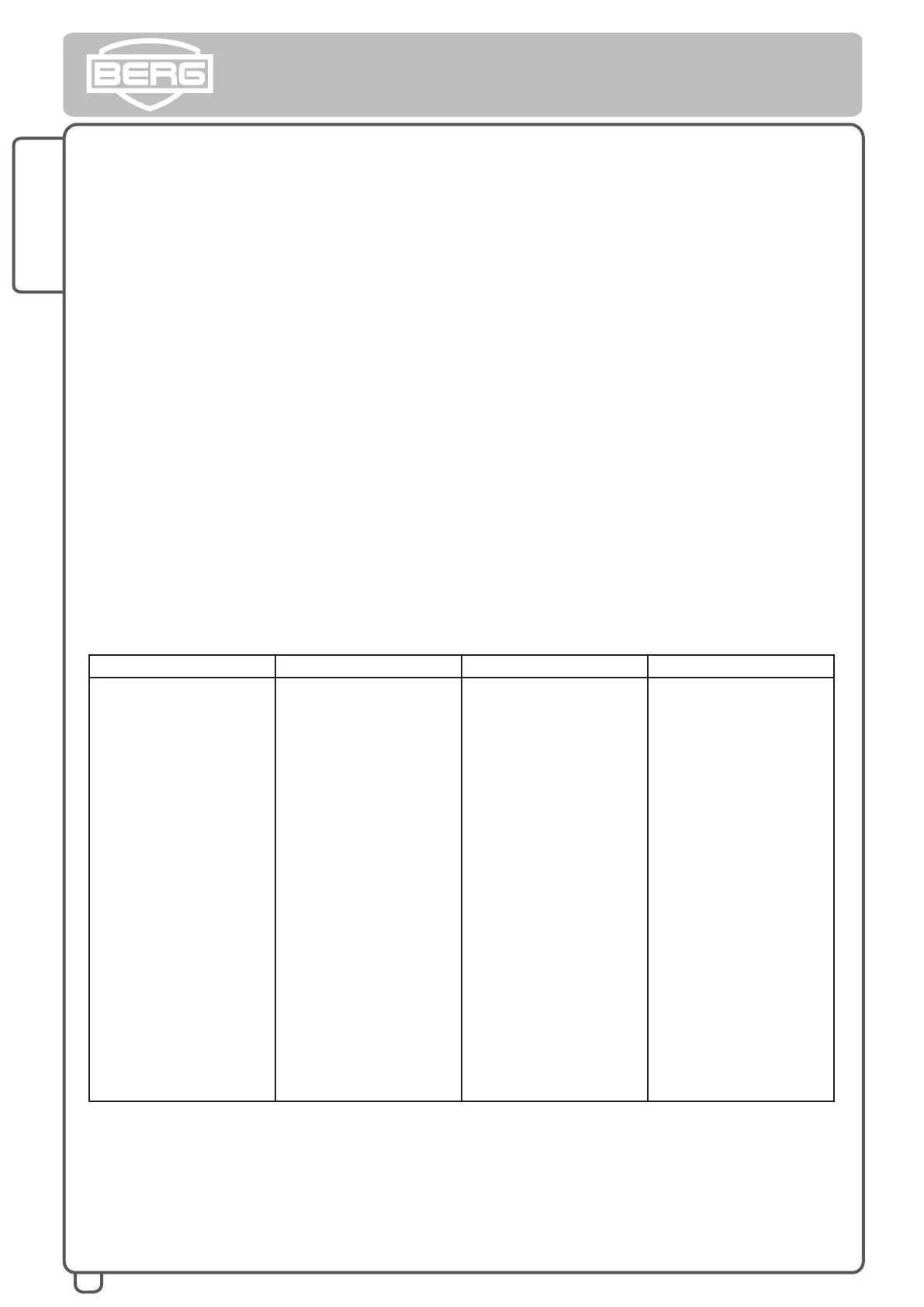 • Only original BERG accessories may be used. BERG has a range of accessories with which you can