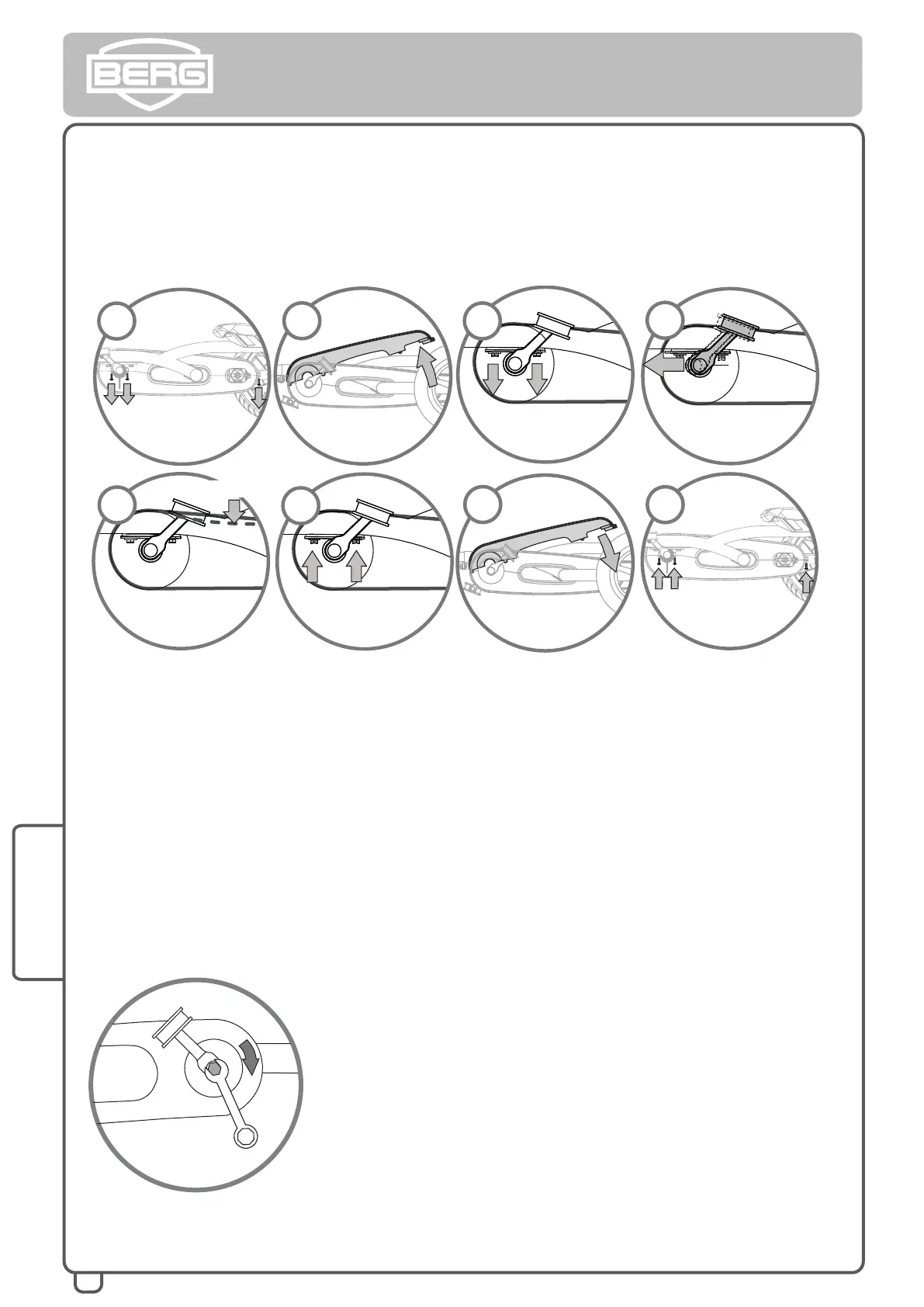 • Tendere la catena spostando in avanti il perno del pedale e tenerlo stretto.