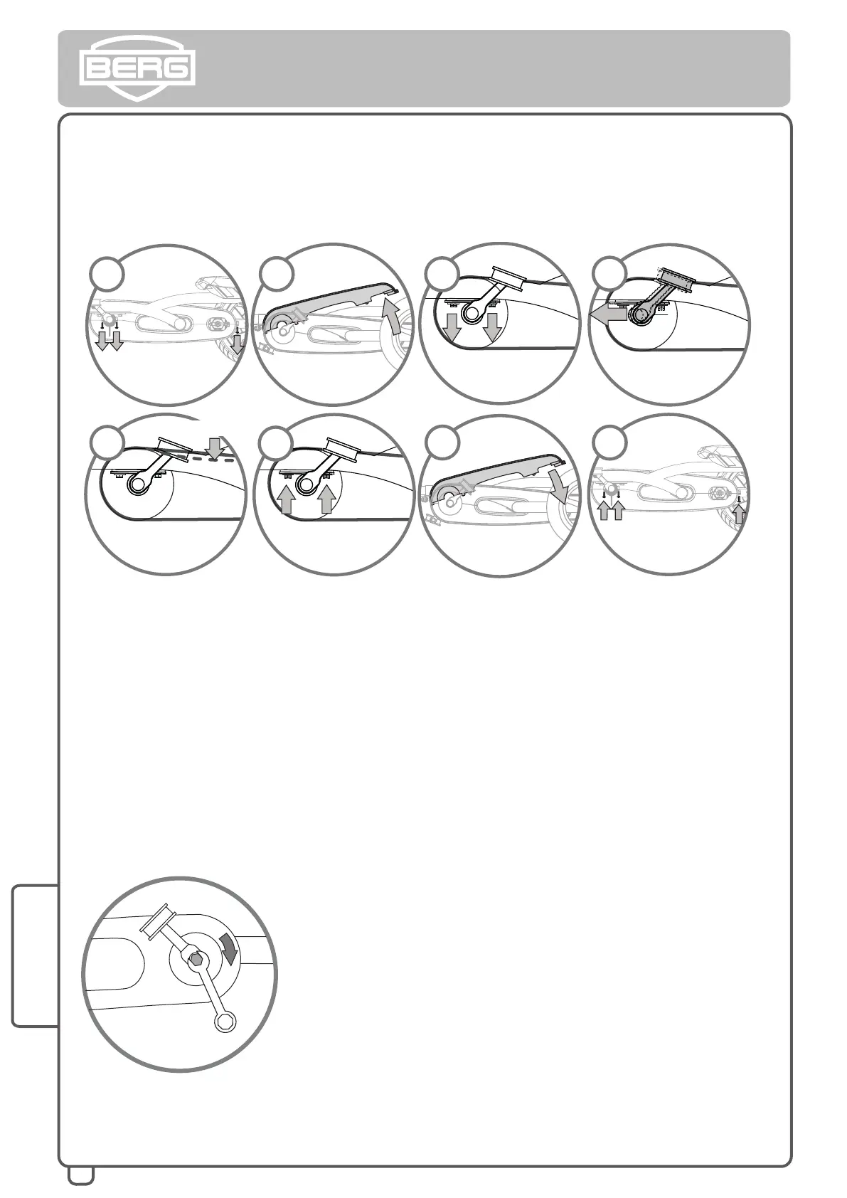 efter købet, skal monteringsboltene, som den venstre og højre pedalarm er gjort fast med, spændes
