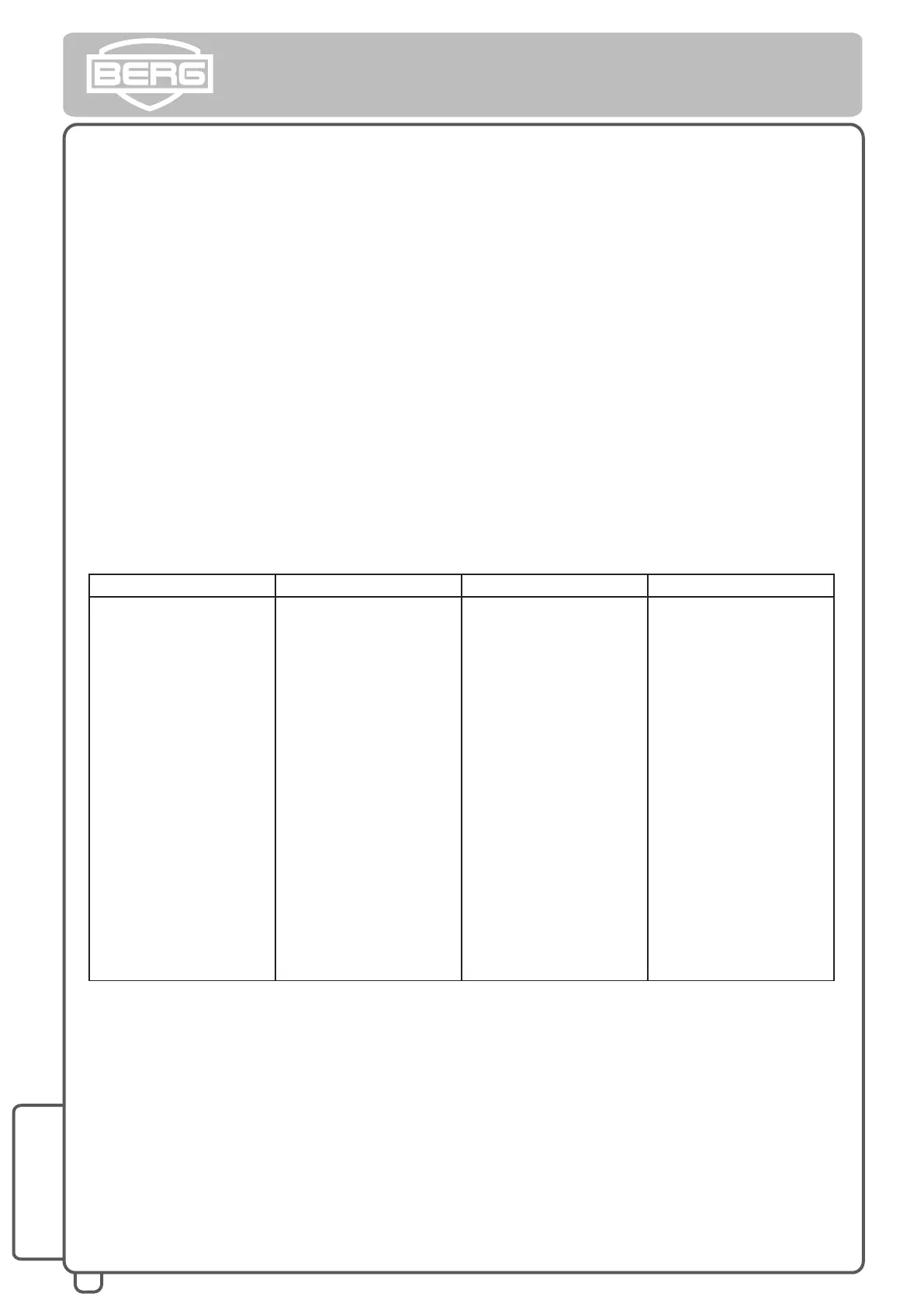 • Endast originaltillbehör från BERG får användas. BERG har en mängd tillbehör som låter dig