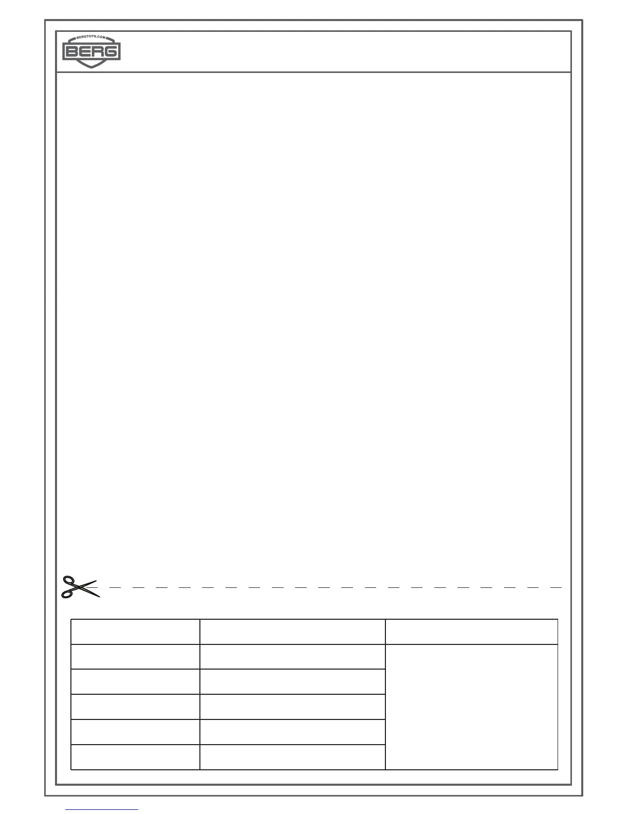 4. Während der Garantieperiode werden alle von BERG Toys festgestellten Material- oder Konstruktionsfehler von