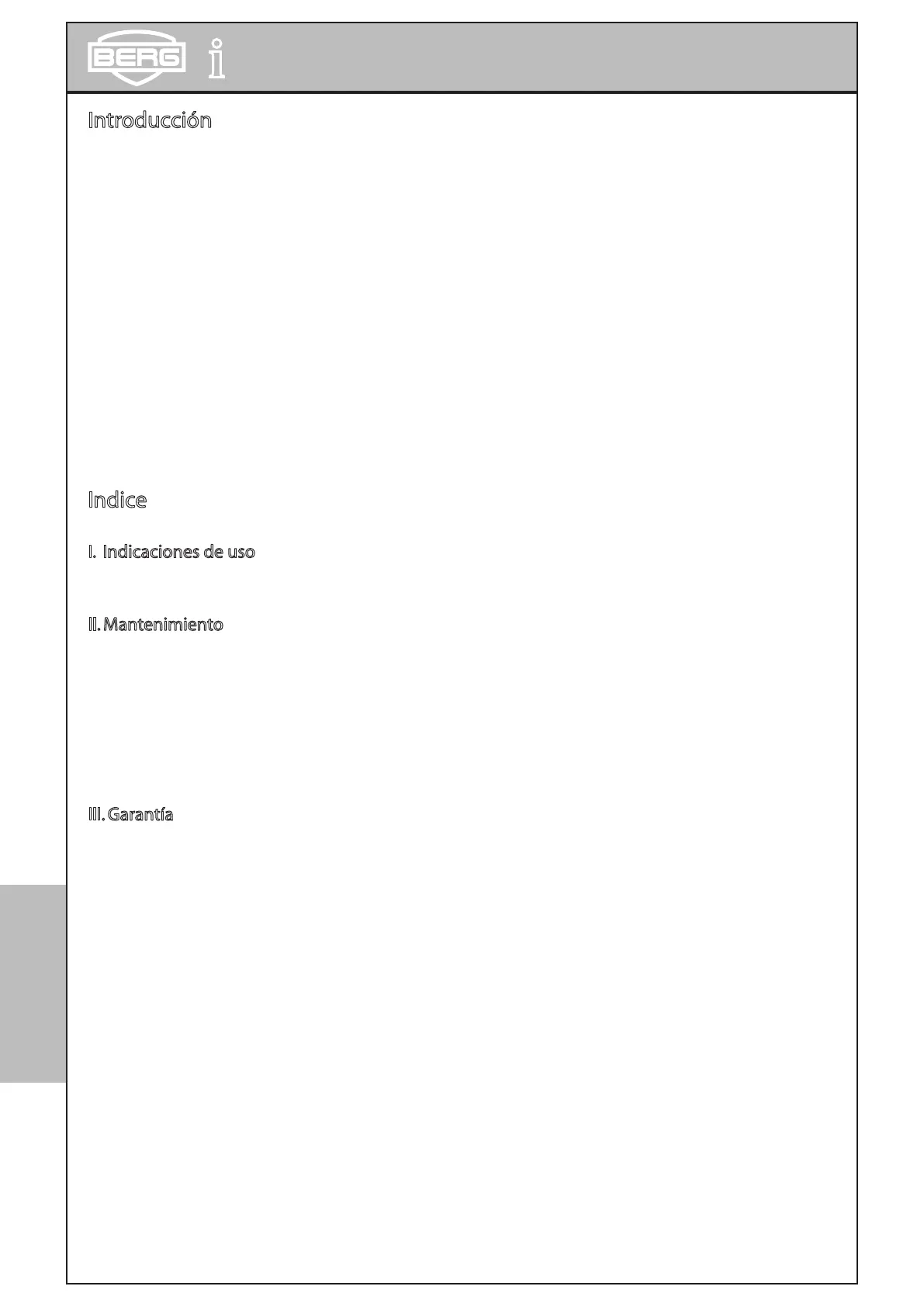 resistentes y seguros. Tu elección de un producto BERG significa que has elegido un producto que te proporcionará satisfacciones